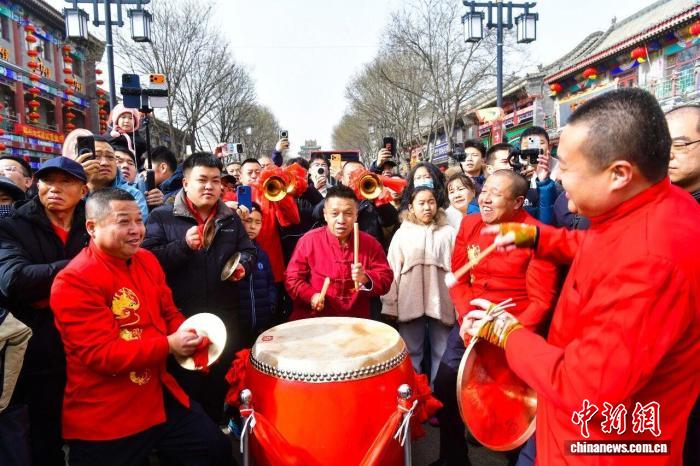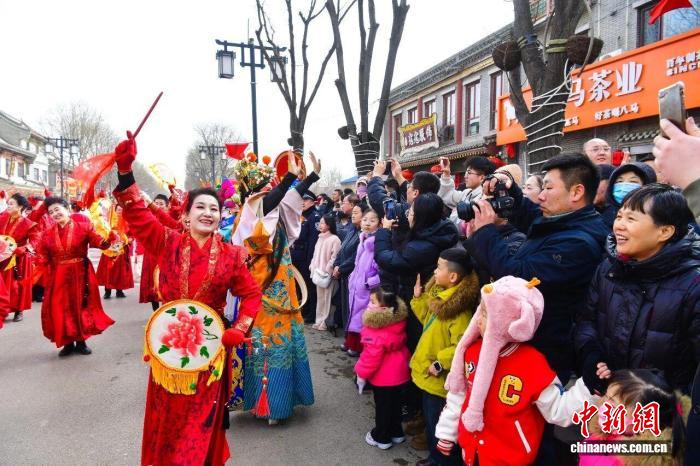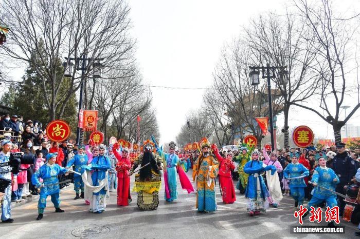 春节假期,山西朔州,一场在街巷间举行的非遗展演让游客感受浓浓年味。 李小龙 摄