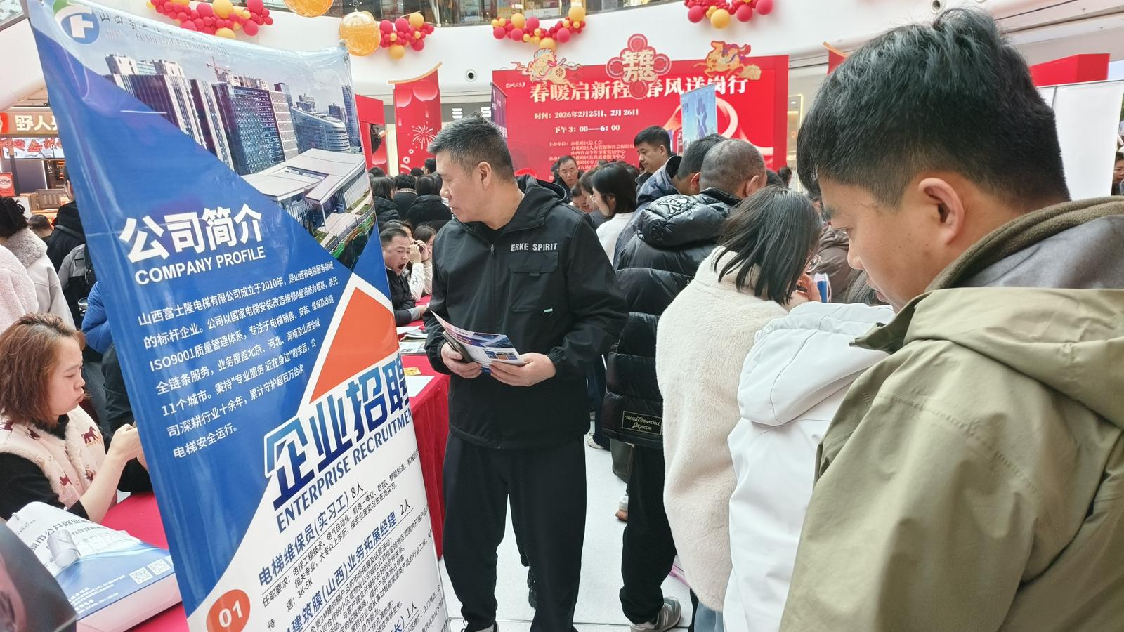2月26日,太原市杏花岭区零工市场在龙湖万达广场举办“春暖启新程,春风送岗行”专场公共就业服务活动。让新春的就业服务温暖直达,助力广大求职者新春觅良岗、企业新年启新程。