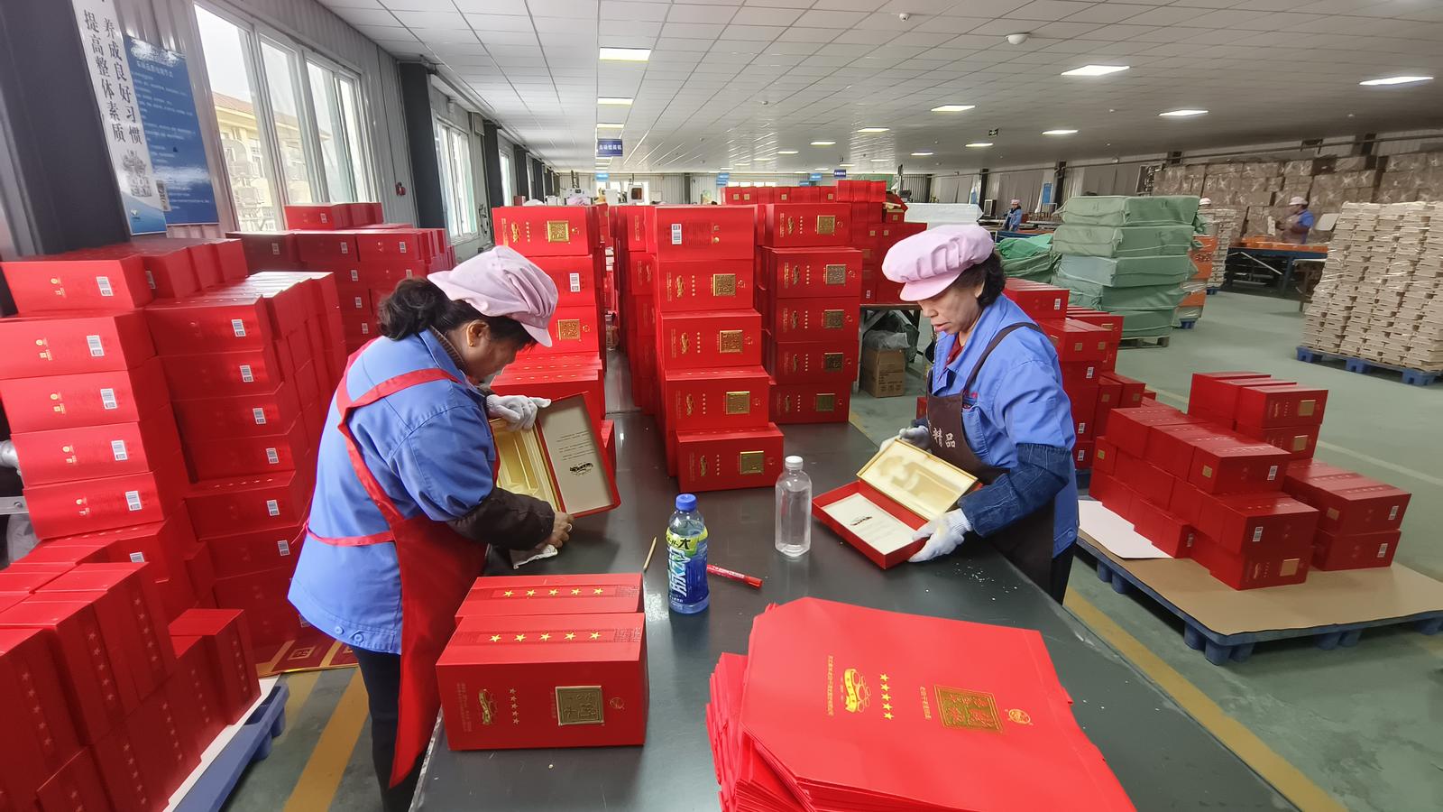 2月25日,位于太原市杏花岭区中涧河镇的太原文博包装有限公司内,生产线上一派繁忙景象,工人们正在为一家河北的白酒公司赶制订单。