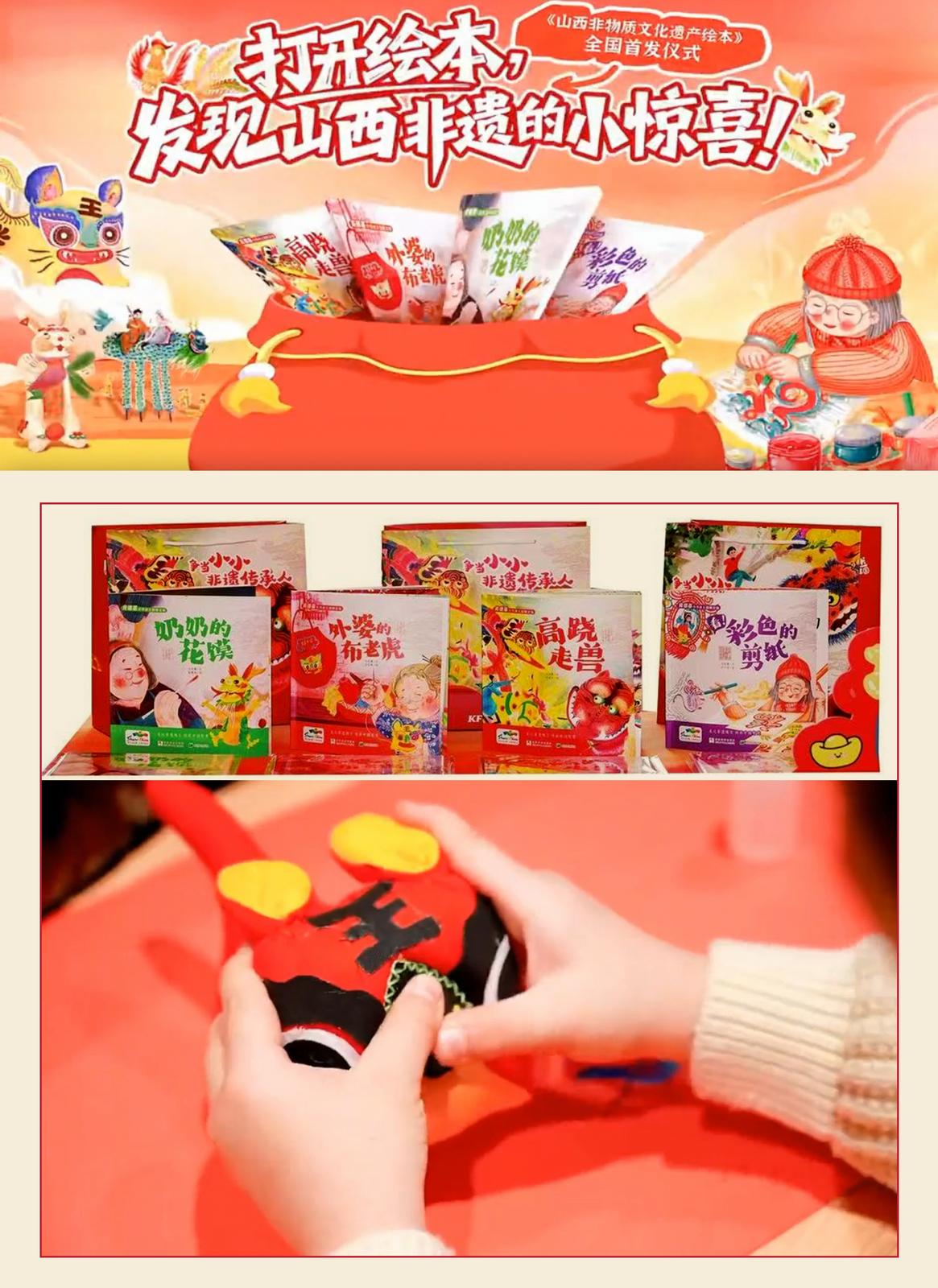 近日,山西非物质文化遗产绘本全国首发仪式暨亲子故事会在山西省图书馆正式启幕。全省182项国家级非遗资源与肯德基全国超12000家门店展开联动,近百万册绘本同步登陆各地门店,让非遗以亲切可感的方式“飞入寻常百姓家”。这场非遗与商业门店的成功联动,在赢得家长与儿童热情点赞的同时,也引发我们思考:该如何看待这场跨界携手?又该如何在享受红利的同时,守住文化传承的本真?