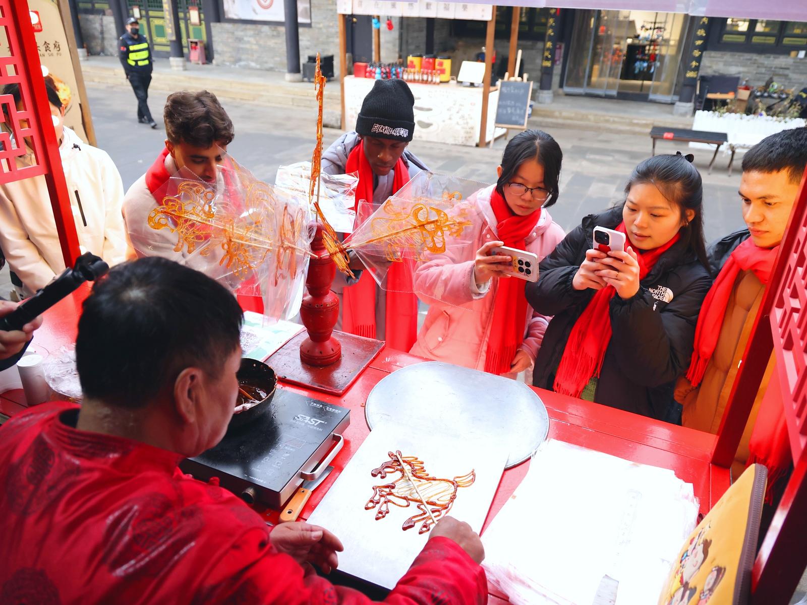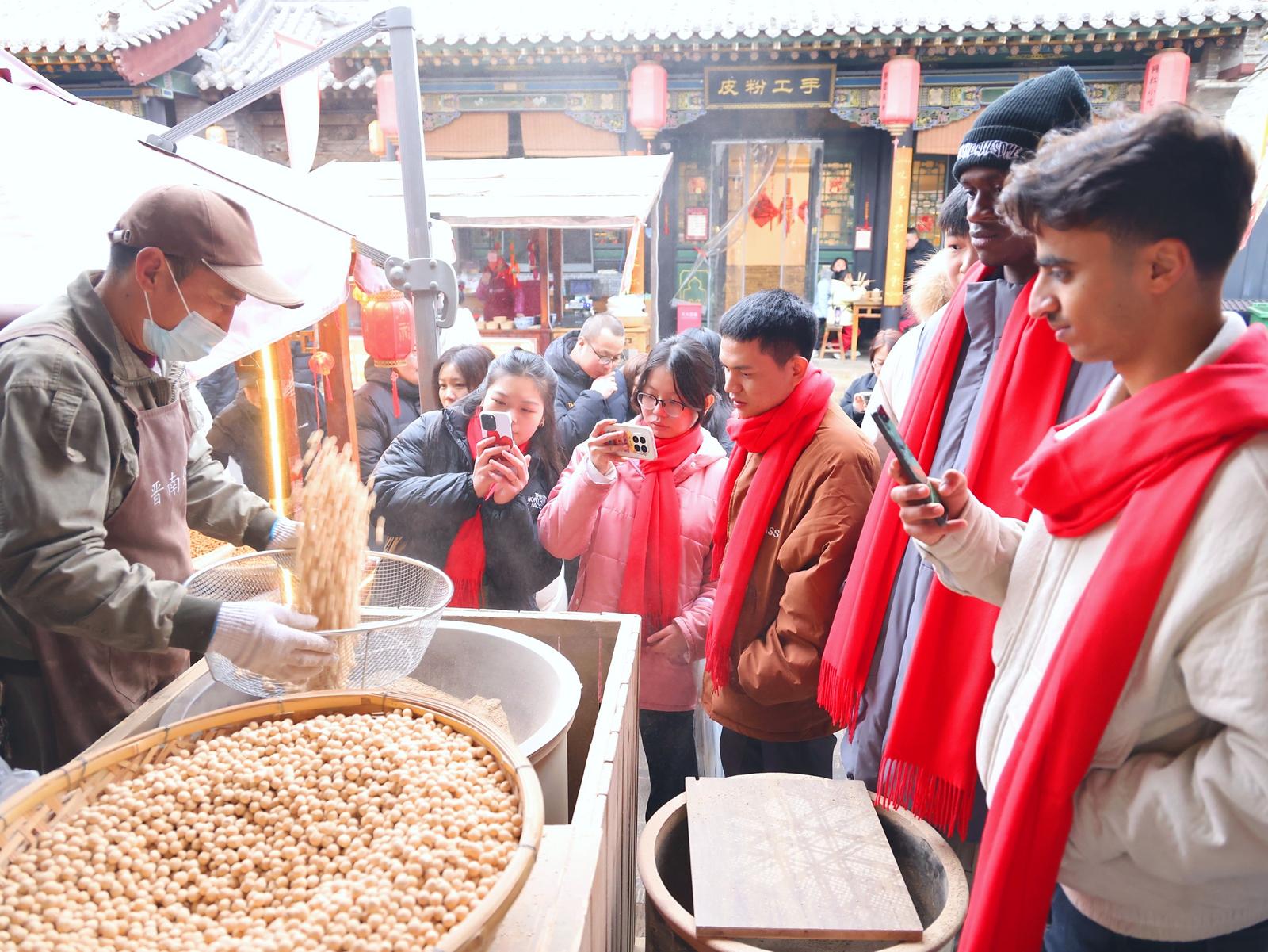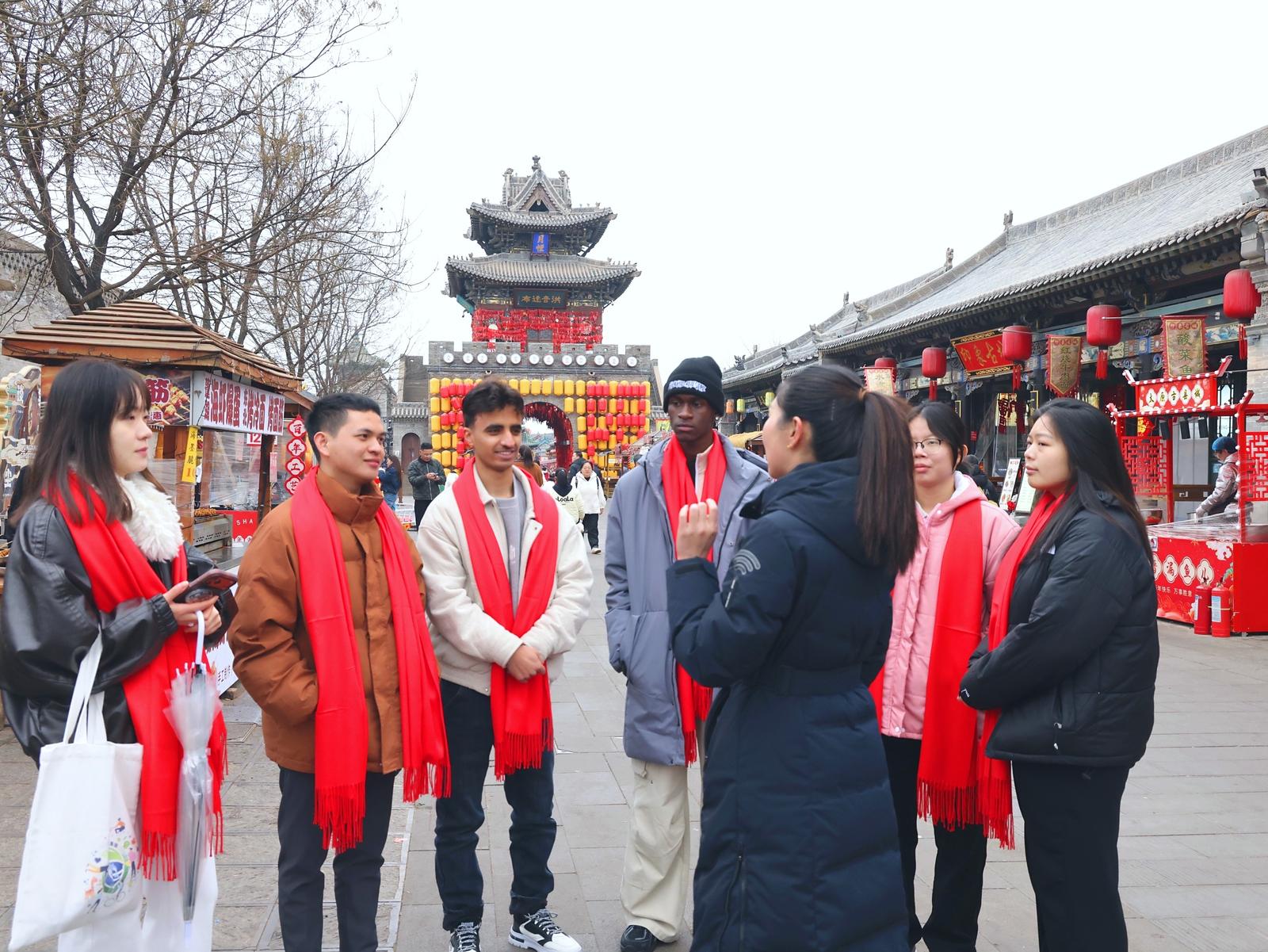 2月28日,“全球同庆中国年——外籍博主山西过大年”主题传播活动第三站走进太原古县城,来自山西大学的留学生及外籍博主沉浸式感受三晋大地的年味儿。