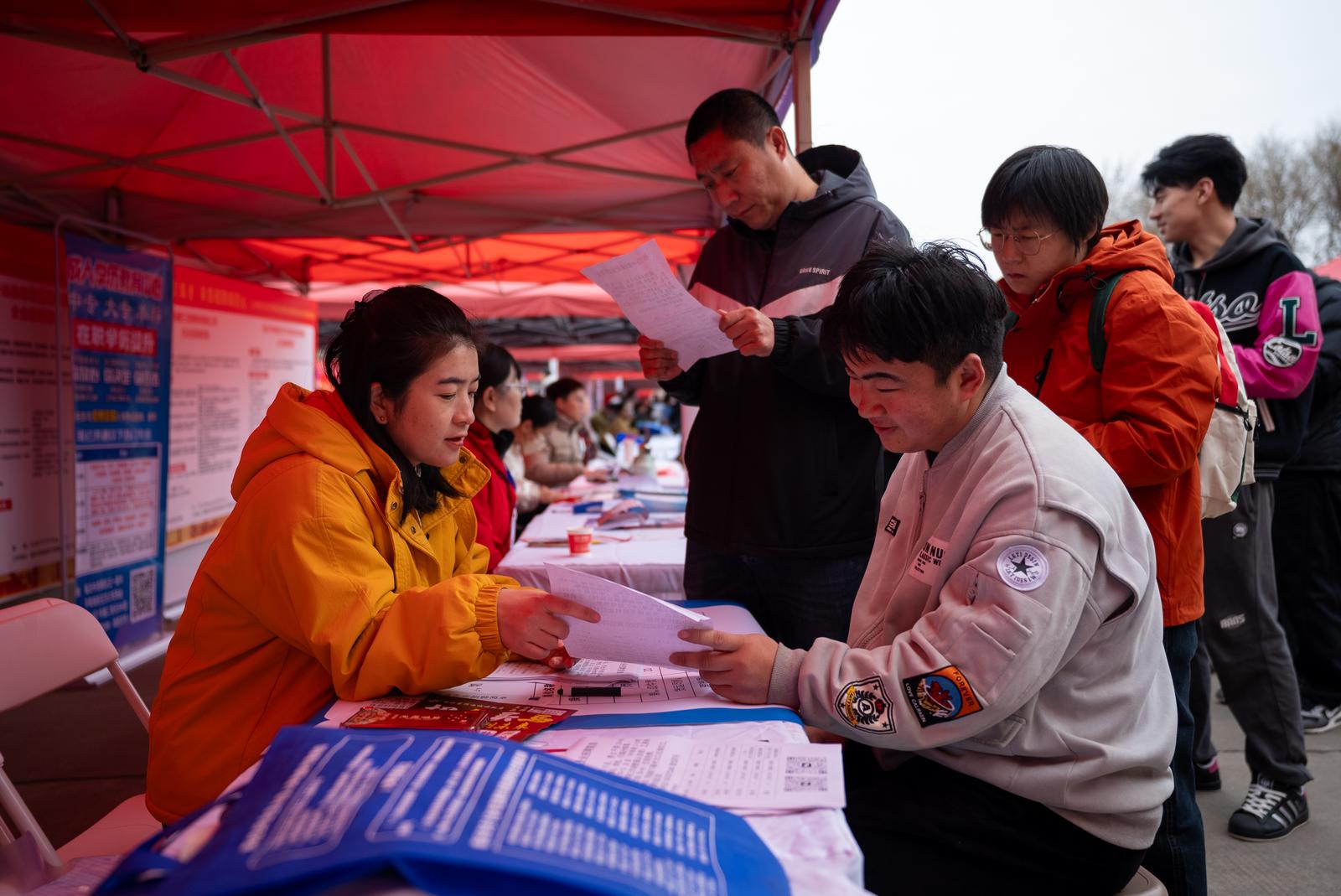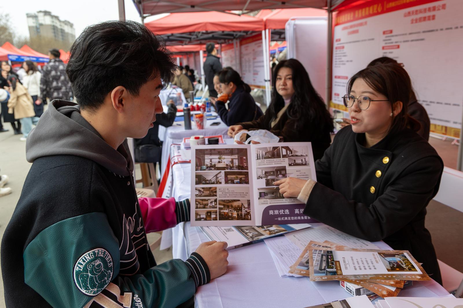2月28日,在临汾市2026年春风行动暨就业援助季临汾示范招聘活动现场,求职者在和用人单位沟通洽谈。本次招聘活动旨在为登记失业人员、灵活就业人员、有就业创业意愿的农村劳动者、应往届高校毕业生、失业青年和有用工需求的用人单位搭建对接交流平台,促进企业节后开工复产,确保劳动者求职有门路,就业有出路。