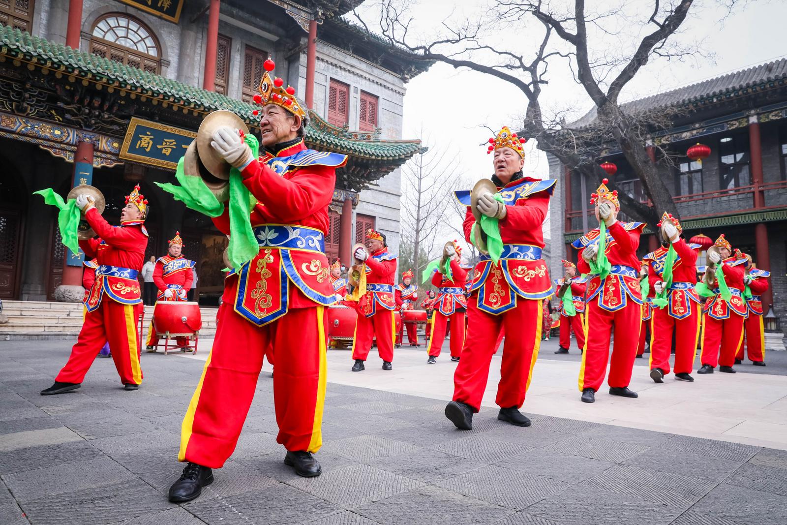 3月2日,太原古县城关帝庙内锣鼓表演喜气洋洋。 王佳骏 摄
