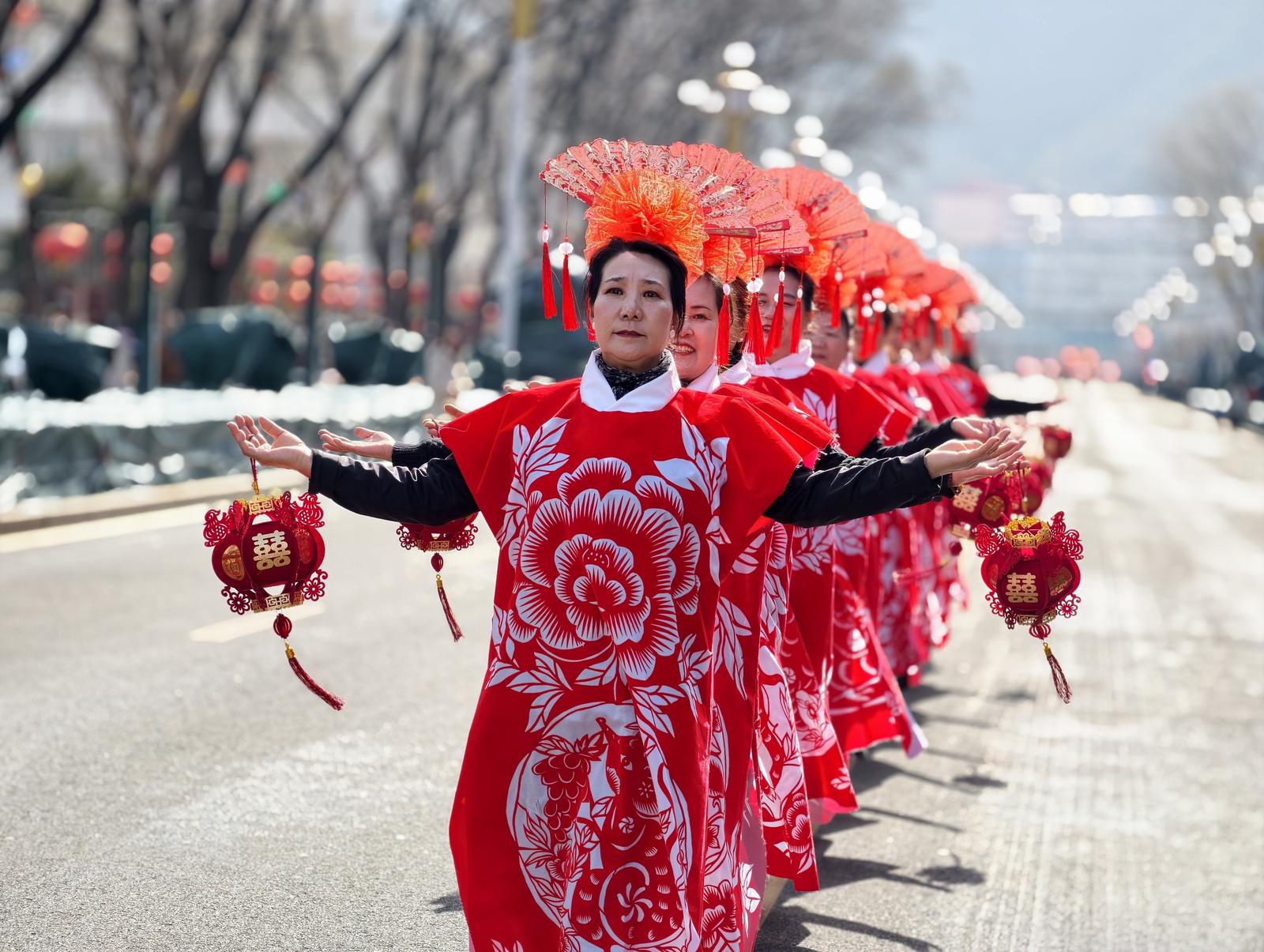 3月2日,朔州市“马年马邑福满城”朔城区元宵节群众文艺队伍街头主题展演举行,为市民群众献上一场热闹喜庆、独具特色的民俗文化盛宴。 李小龙 摄