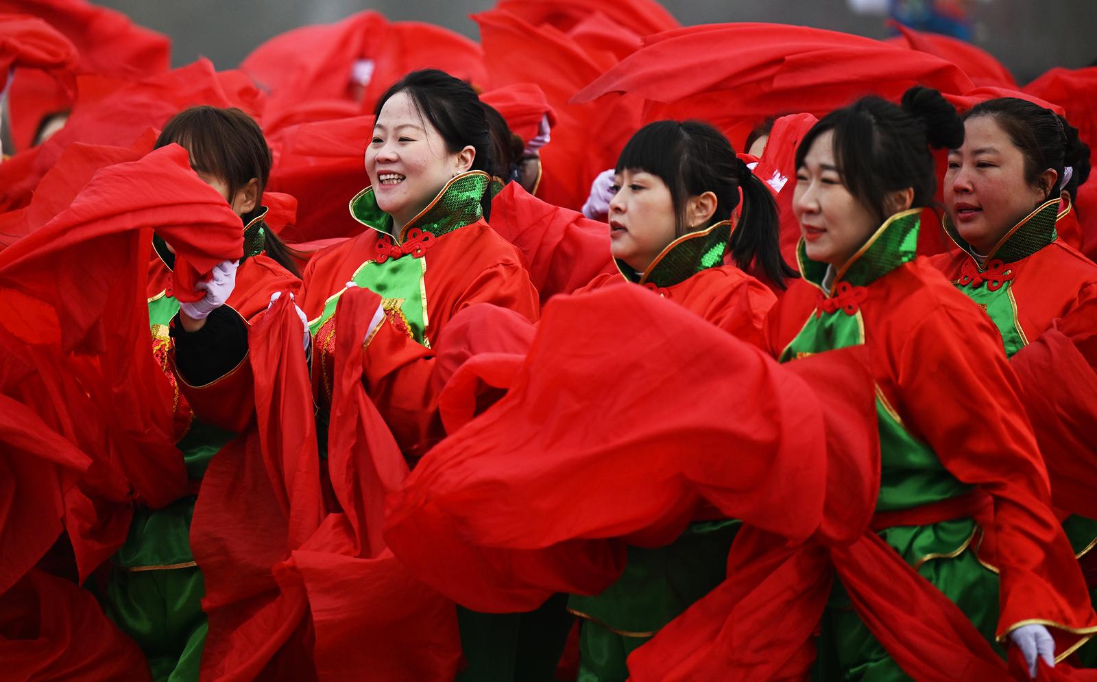 3月1日,太原市群众表演传统秧歌。 李兆民 摄
