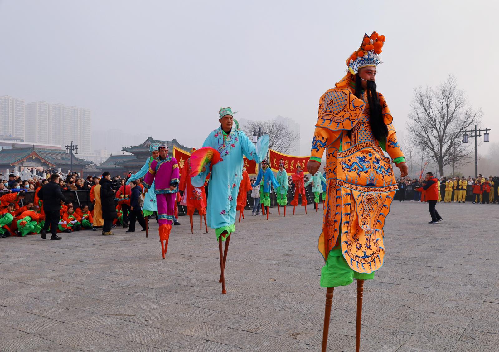 3月2日,晋城市泽州县在丹河新城举办民间社火巡游活动。 禹成炎 摄