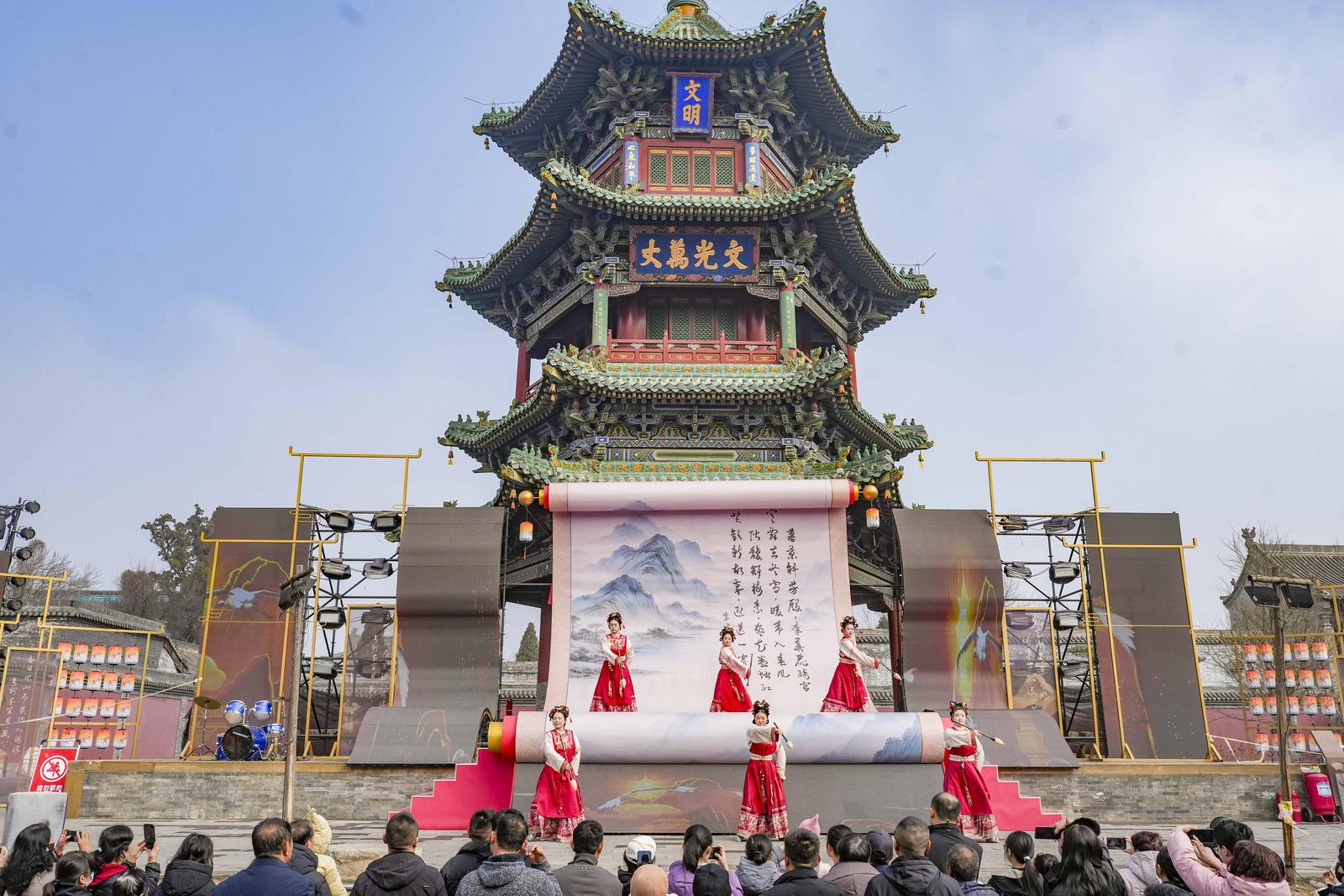 3月3日,太原古县城,精彩的节目表演为游客带来一场视觉盛宴。严长江 摄