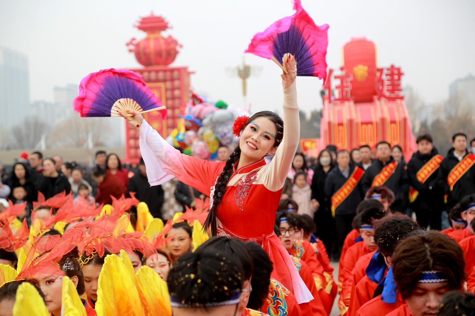 3月3日,太原双塔公园中心广场,民俗节目展演庆祝元宵节。吴晓庆 摄