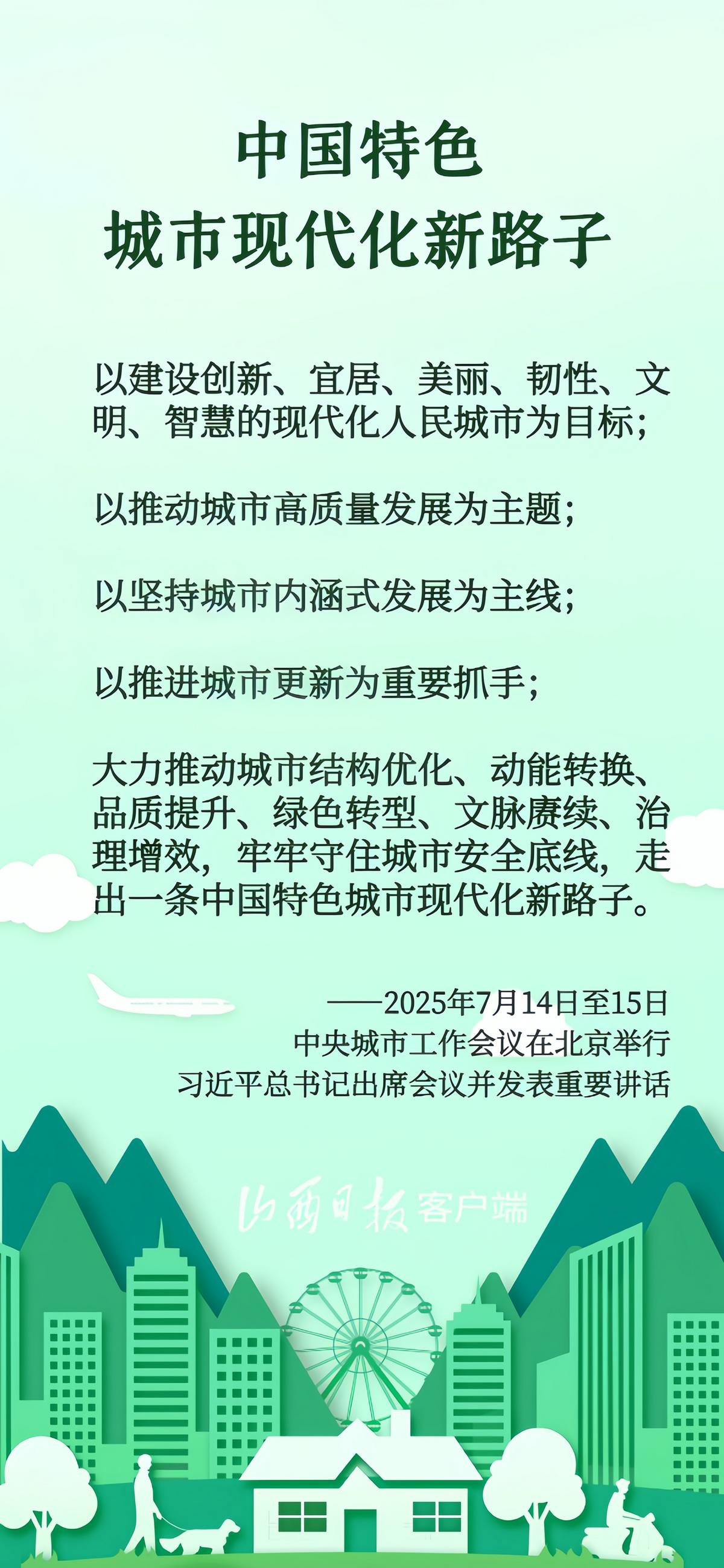 城市是现代化建设的重要载体、人民幸福生活的重要空间。“创新、宜居、美丽、韧性、文明、智慧”,在2025年7月举行的中央城市工作会议上,习近平总书记鲜明提出了现代化人民城市的建设目标,强调“走出一条中国特色城市现代化新路子”。