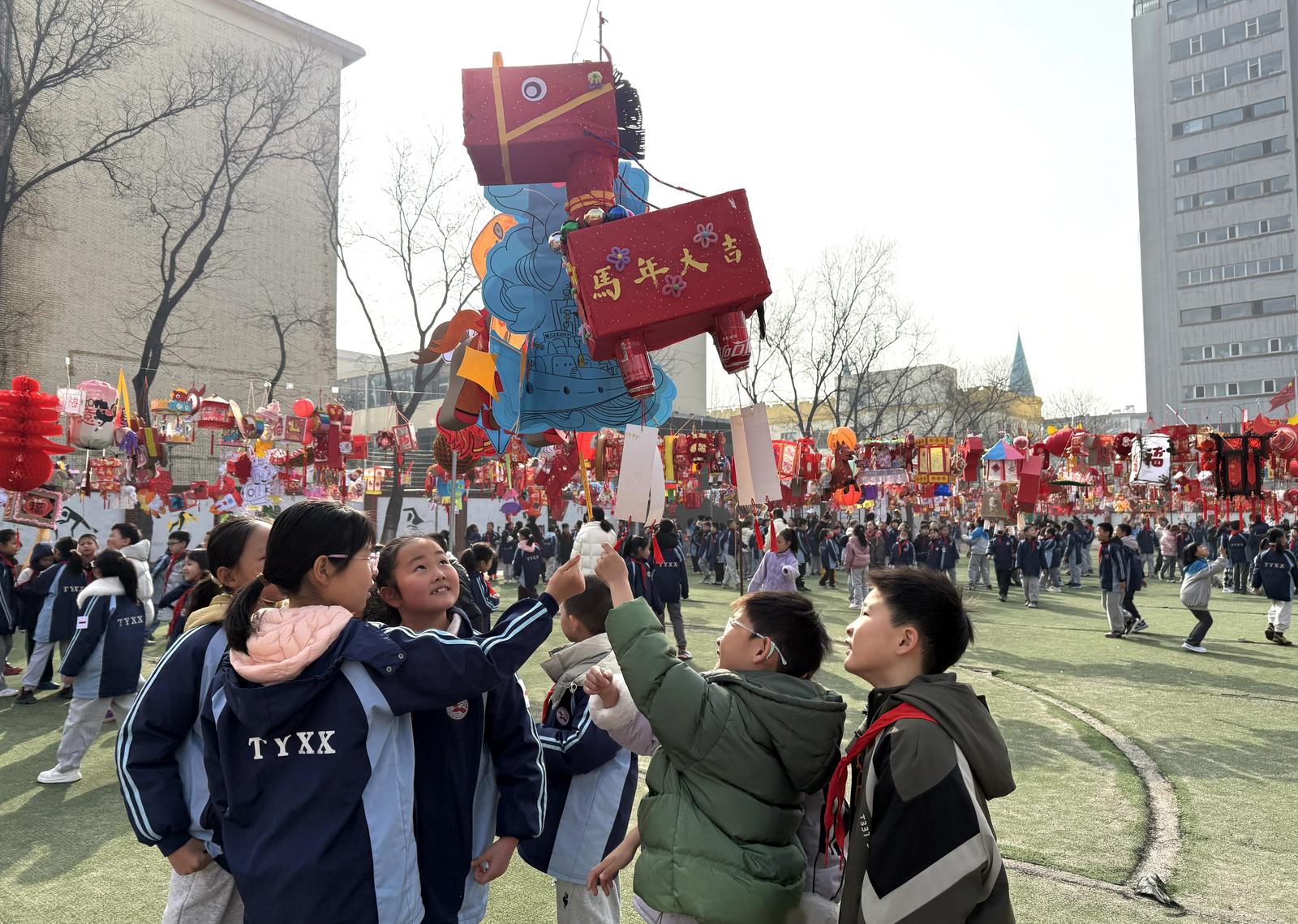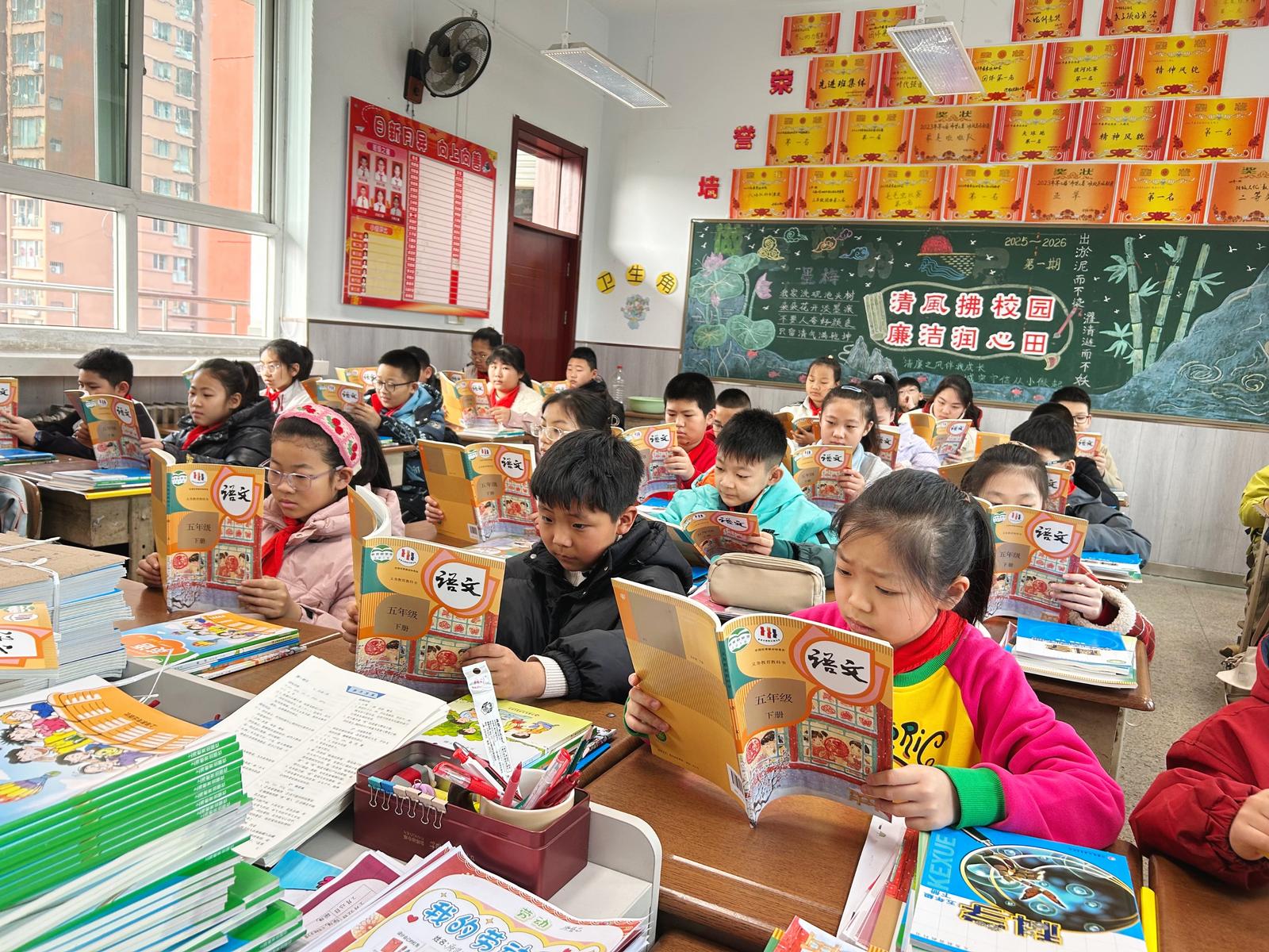 走进五年一班,崭新的语文、数学等课本整齐码放,贾老师将带着墨香的书本递到孩子们手中。孩子们捧着新书,或仔细翻阅、或轻声诵读,眼神里满是对知识的渴望。在桃园小学,操场上一片欢腾,老师和同学们一起猜灯谜,展示自己在假期里的动手成果,感受传统节日魅力。同样,在杏花岭区新建路第二小学校,孩子们搬绿植、领新书、诵课本,开启元气满满的新学期。