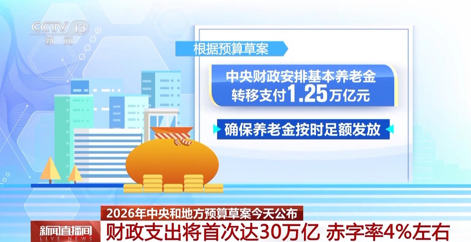 2026年中央和地方预算草案公布 财政支出将首次达30万亿