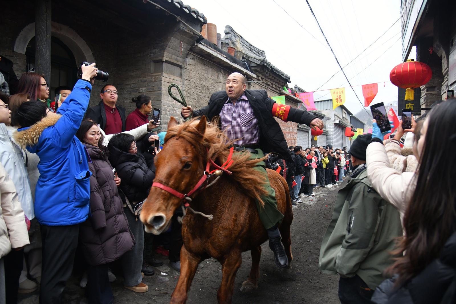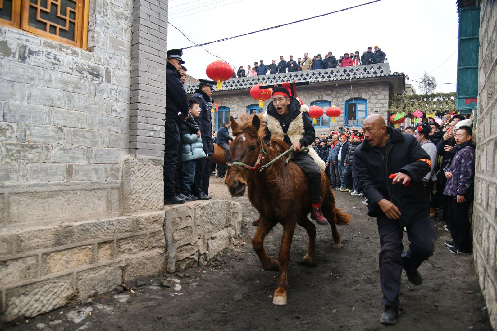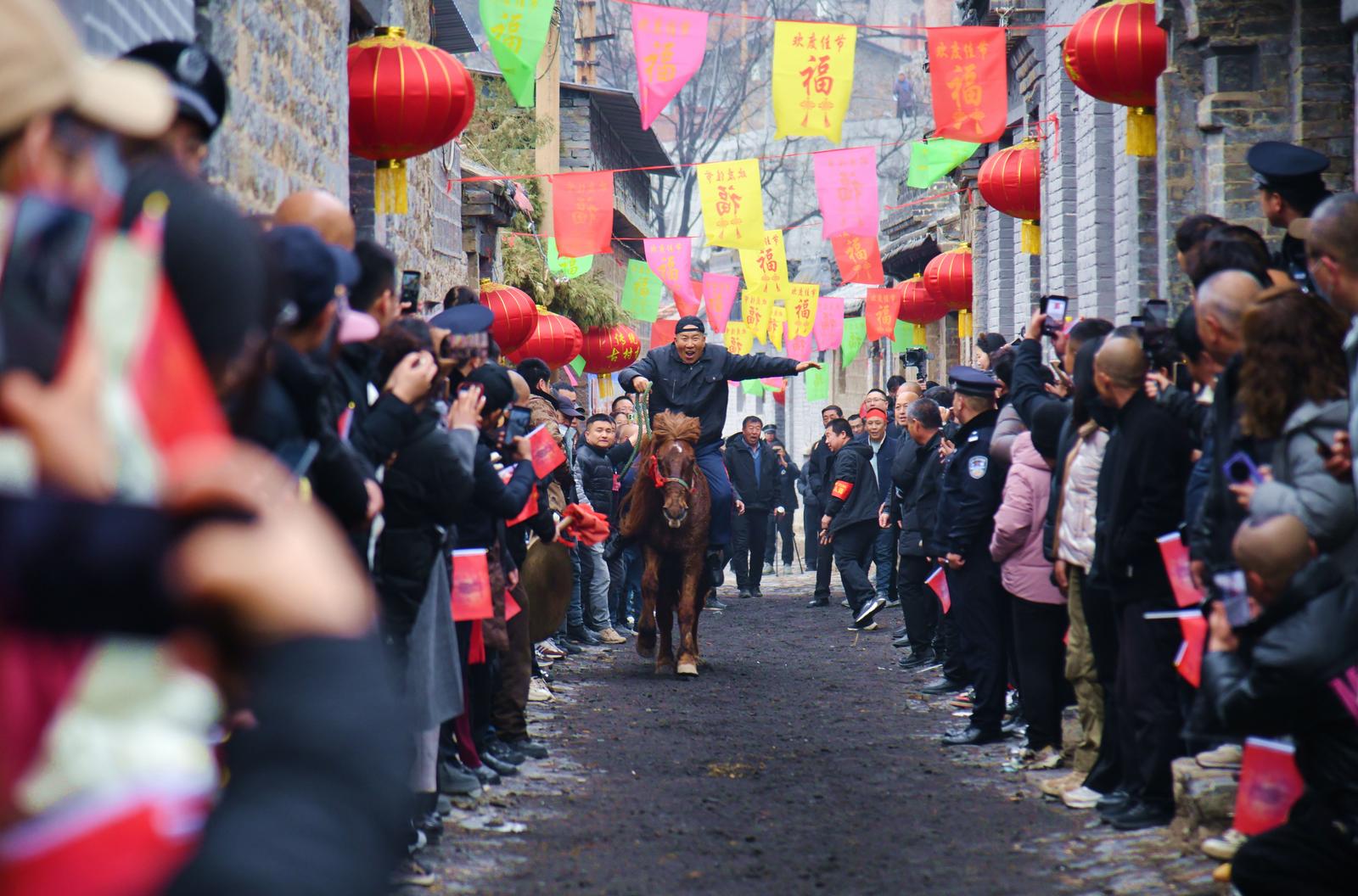 古村中跑马民俗展示非遗魅力