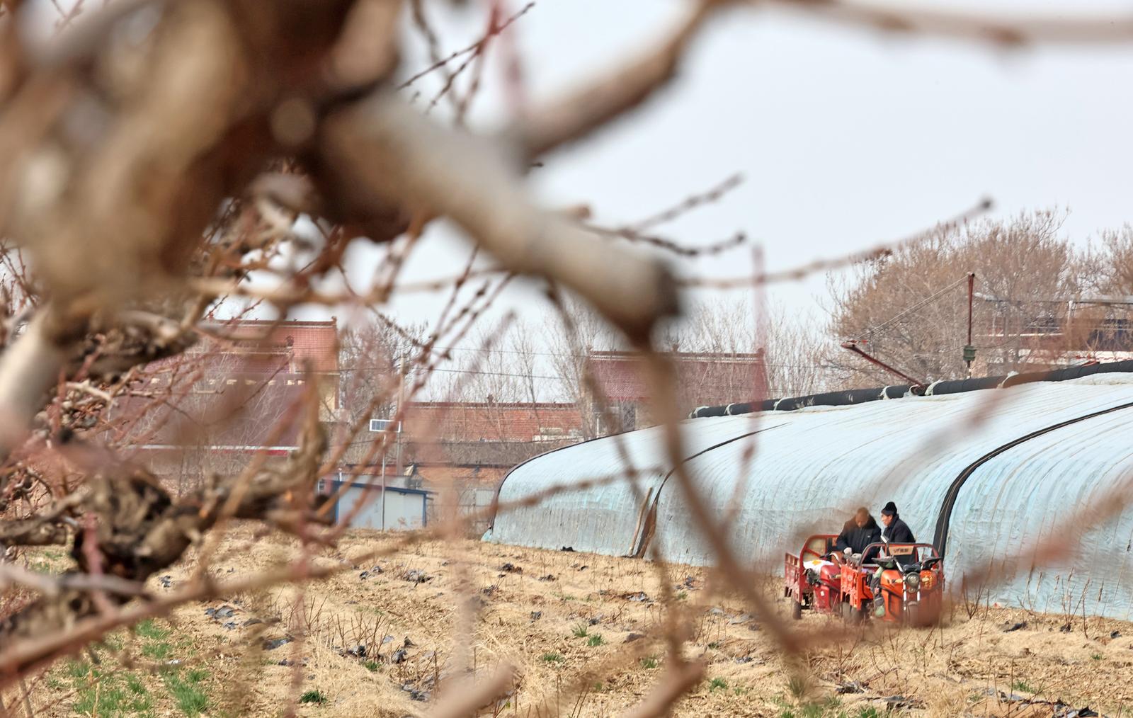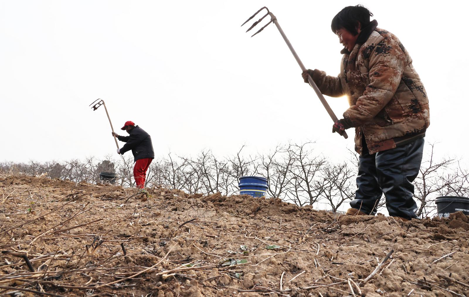 3月4日,运城市新绛县在一场降雨过后,农民们在惊蛰时节处理农事,修剪果树、移栽新苗、平田整地、收获蔬菜,给麦田、果园等松土追肥浇灌,田间处处是忙农事迎“惊蛰”。