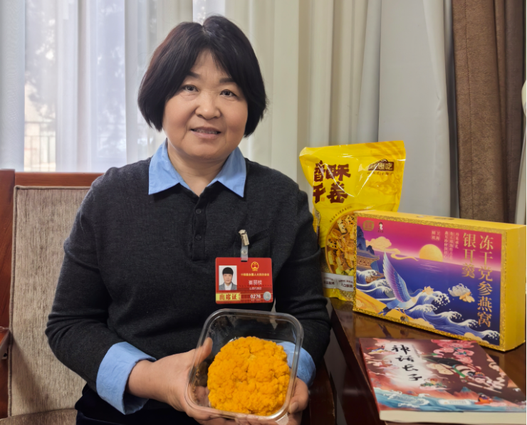 ▲崔丽枝携家乡好物上两会