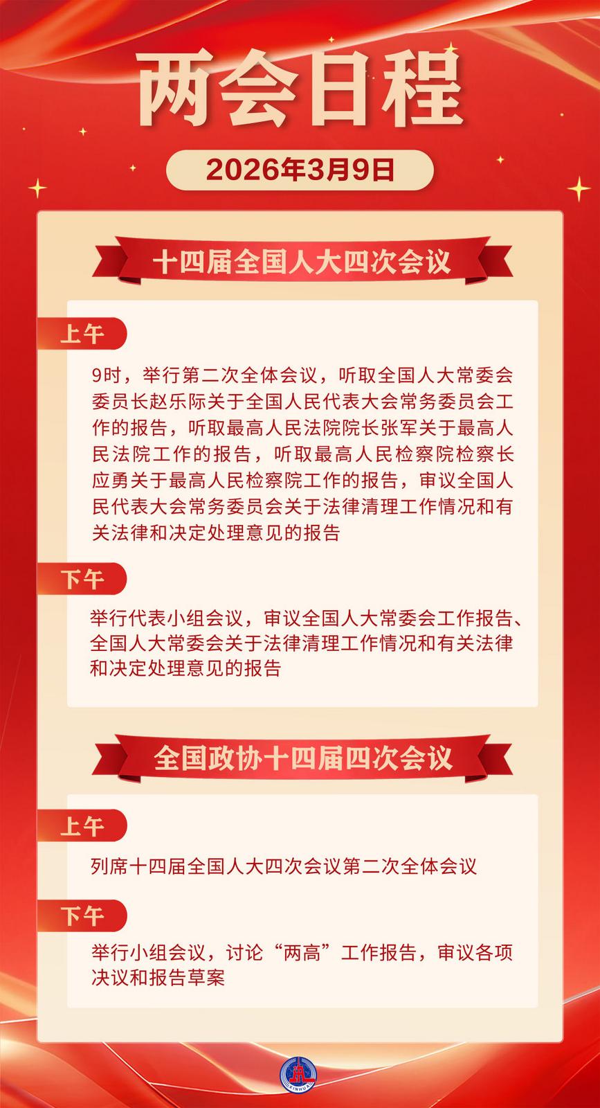1.两会日程预告|3月9日:全国人代会举行第二次全体会议听取全国人大常委会工作报告和“两高”工作报告