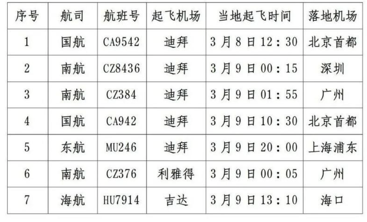 据了解,以下航班尚有余票。外交部领事保护中心建议,滞留中东地区的中国旅客抓紧时间通过以下航班回国,可登录各航空公司微信服务号或小程序购票。