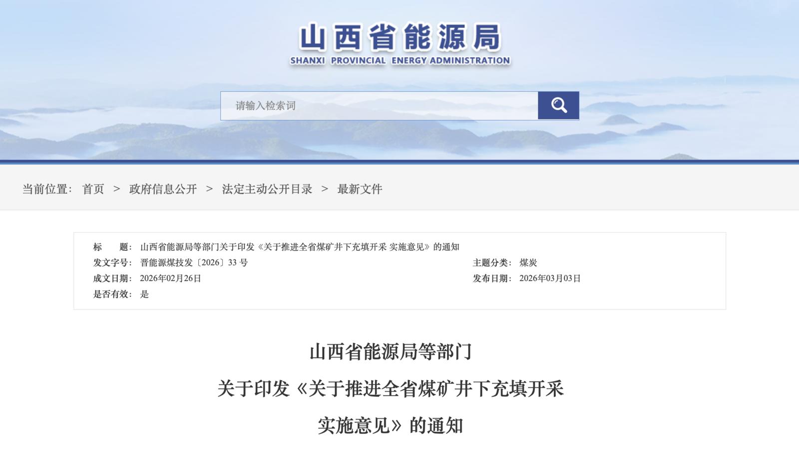 近日,山西省能源局、山西省自然资源厅、山西省生态环境厅、山西省应急管理厅及国家矿山安全监察局山西局联合印发《关于推进全省煤矿井下充填开采实施意见》(以下简称《实施意见》),旨在破解煤矸石处置难题,推动煤炭行业绿色低碳转型。