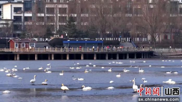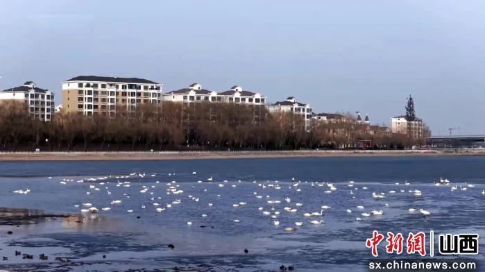 山西朔州:200余只天鹅飞临恢河公园水域
