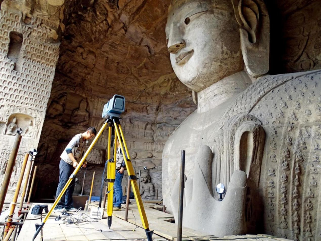 ▲工作人员对云冈石窟进行数字化采集(供图:云冈研究院)