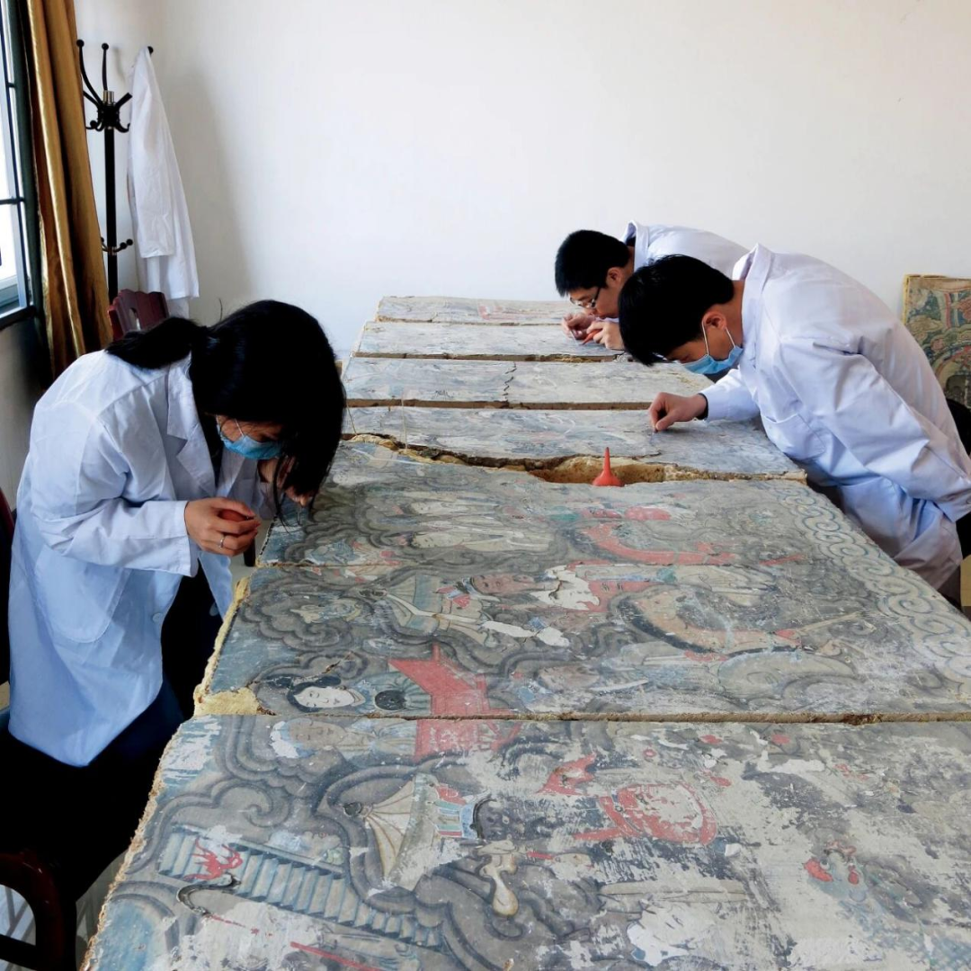 ▲云冈石窟清代壁画的保护修复(供图:云冈研究院)