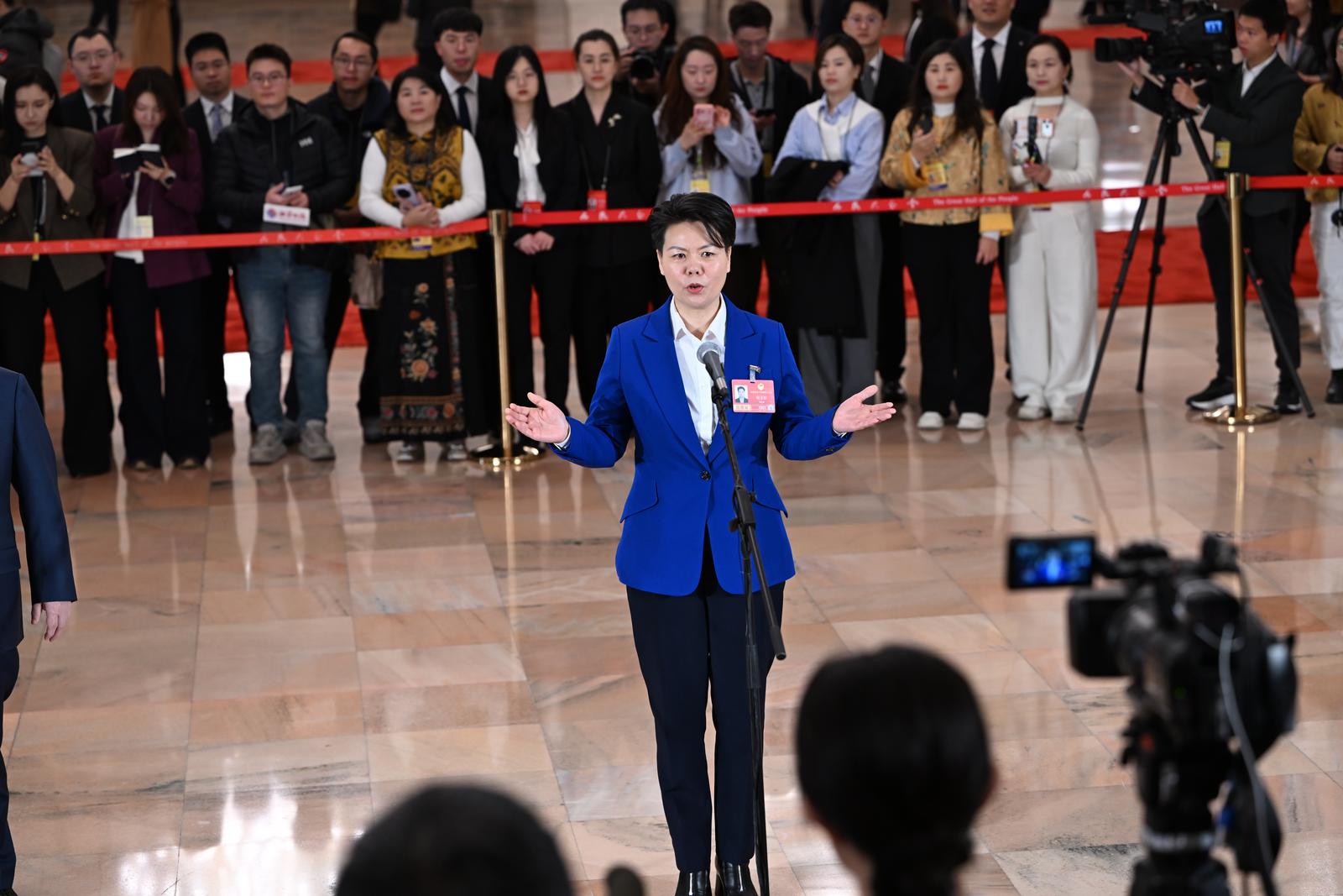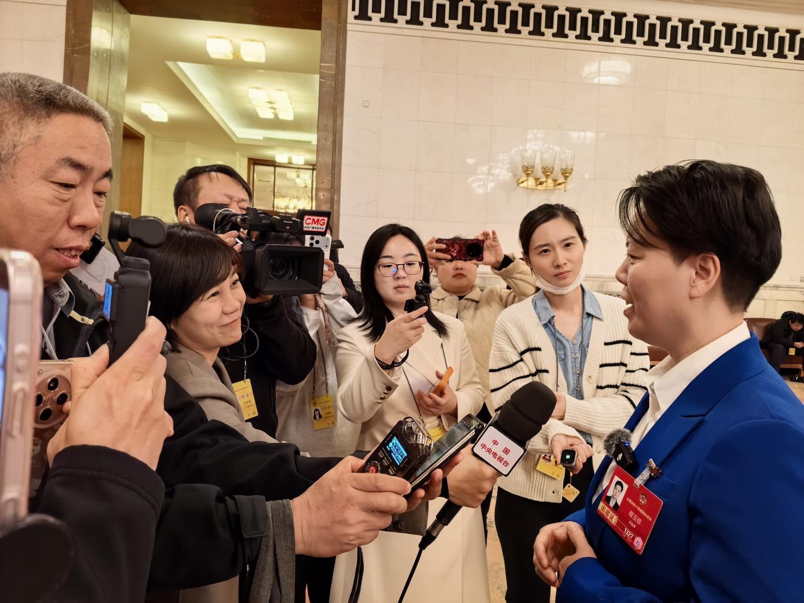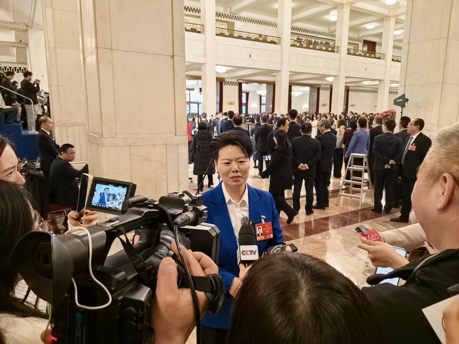 走出“委员通道”,程玉珍刚要前往会场,就被记者们围了个水泄不通——“村里今年有什么新举措”“会不会举办‘村超’‘村BA’”……程玉珍难掩激动,连连摆手说:“我到现在都像在做梦——一个村支书能到人民大会堂讲村里的故事,这是多大的荣光啊!”她整了整胸前的委员证:“党和国家时刻关心着三农发展,回去后我得继续好好干,我将和乡亲们持续壮大特色产业,把酿酒、体育等元素深度融入乡村发展,欢迎大家随时来玩。”
