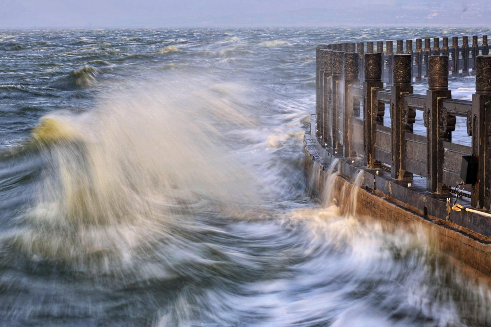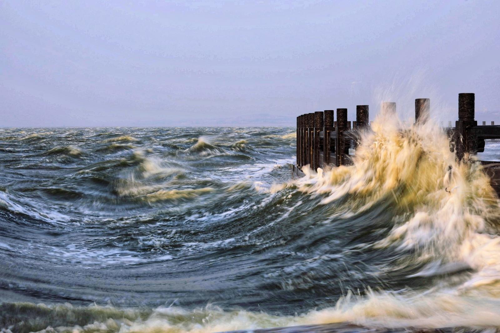 3月12日,受北方春季大气候及运城盆地特殊地形的影响,运城盐湖迎来了一场历时20余小时的七——八级大风,出现了少有的盐湖独特景观。逐浪踏歌,惊涛拍岸,扬起浪花万千。风卷碧波,浪撞古栏,天水浑然相连。这壮阔的自然画卷,蕴藏着盐湖独有的浪漫与力量,也让每一位观潮者心潮澎湃。