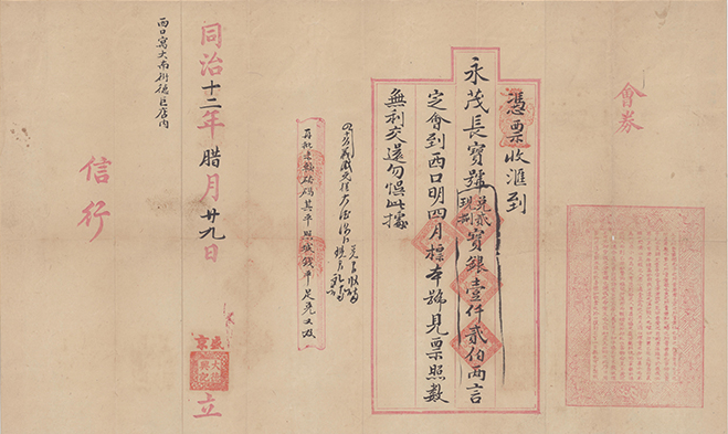 △同治十二年十二月廿九日盛京大德兴记立给西口大德兴信汇汇票,晋商博物院藏