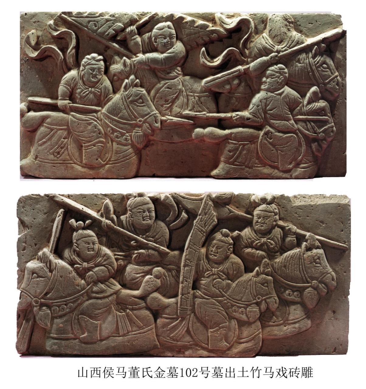 山西侯马出土的金代砖雕上,刻着一群孩子骑着完整的“竹马”——竹条扎骨架,外蒙彩布,有马头、马身、马尾,甚至有马鞍和铃铛。