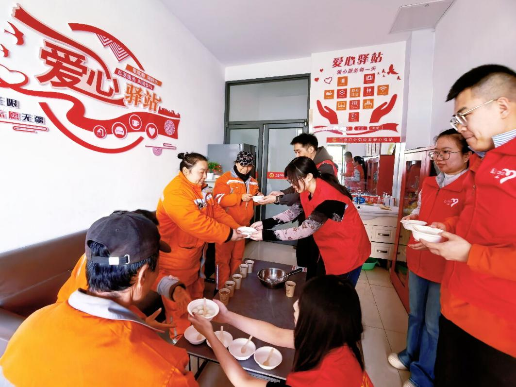 朔州公司青年志愿者将满载祝福与关怀的汤圆送到户外劳动者及一线员工手中。