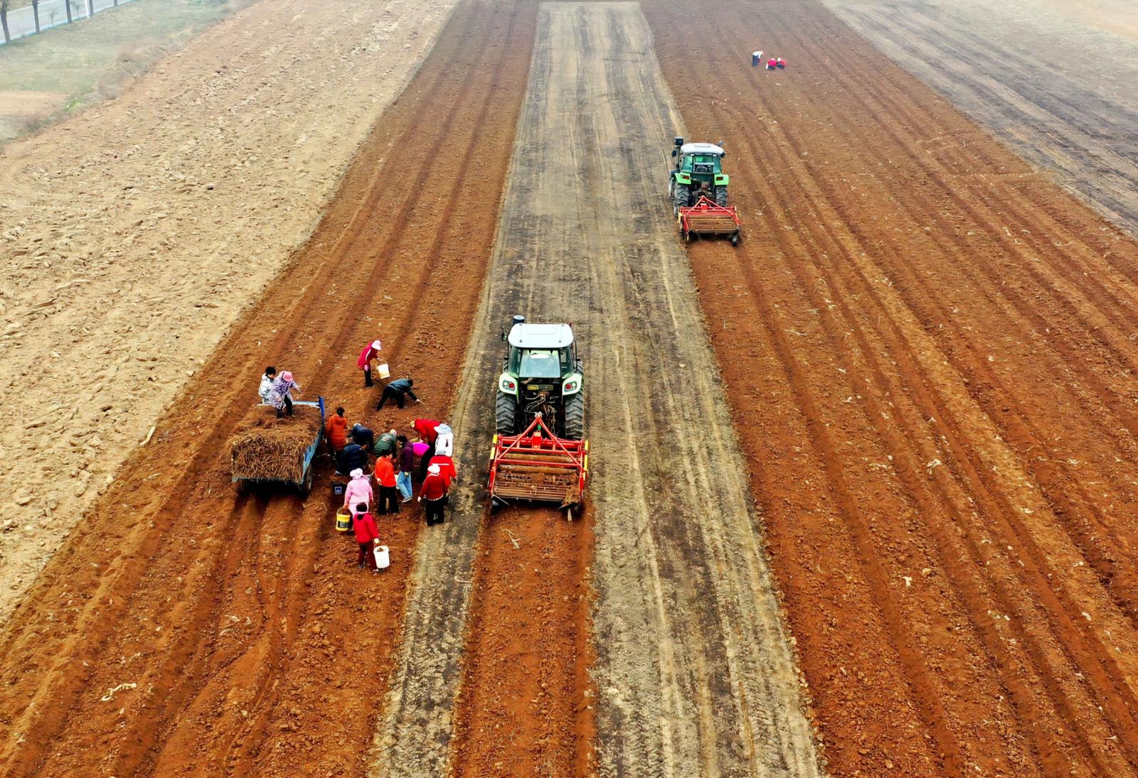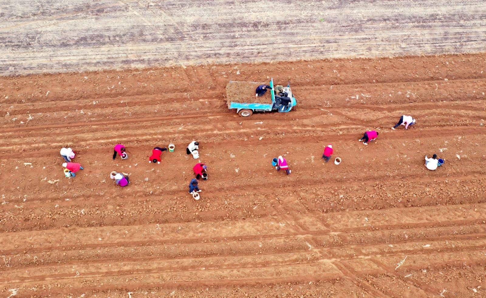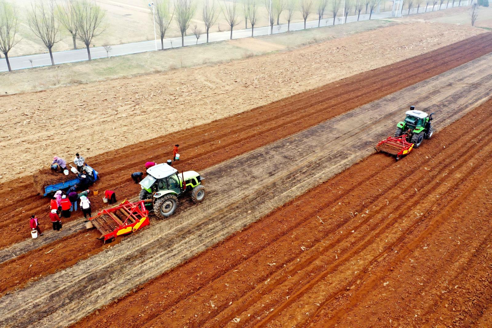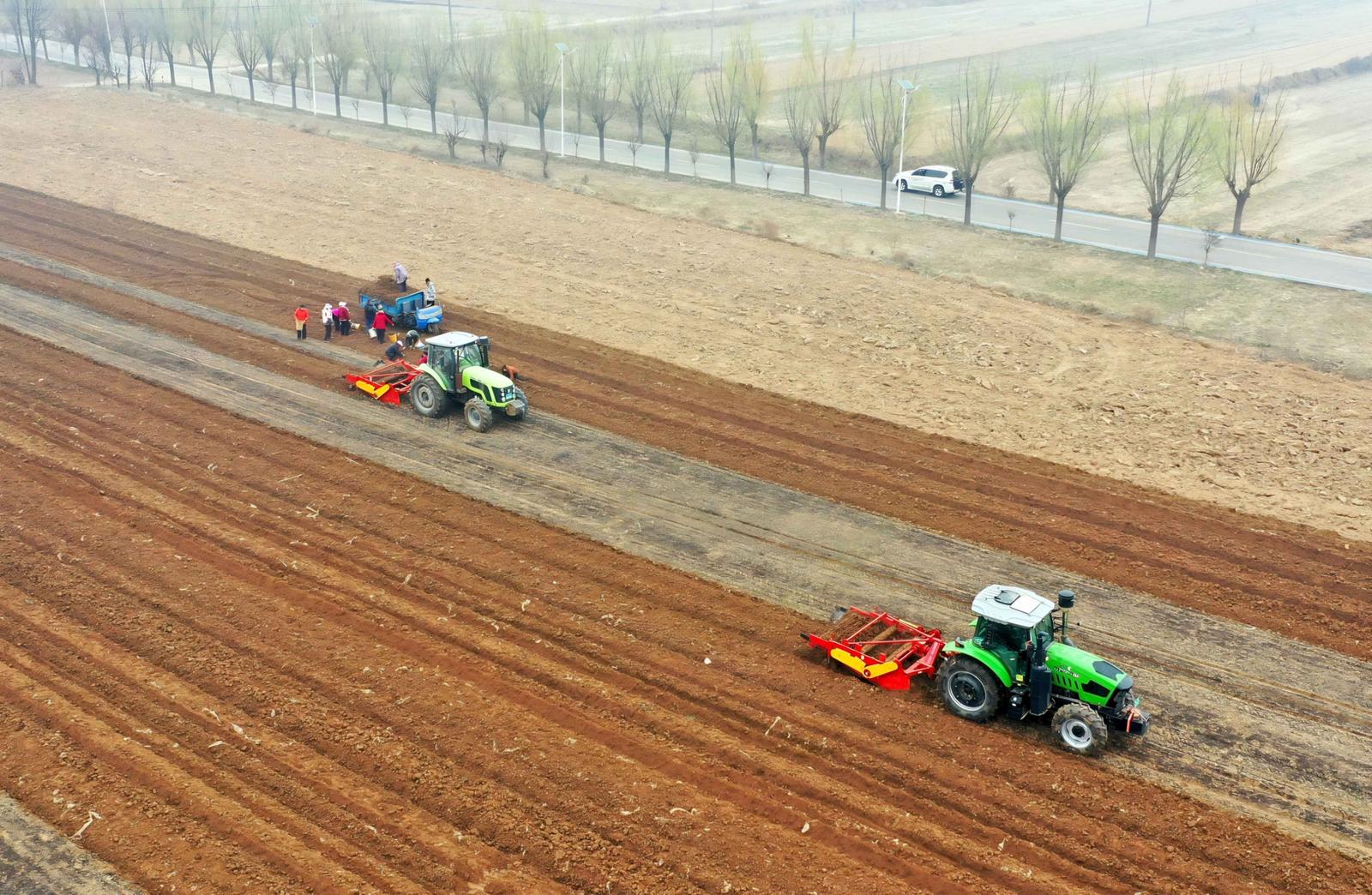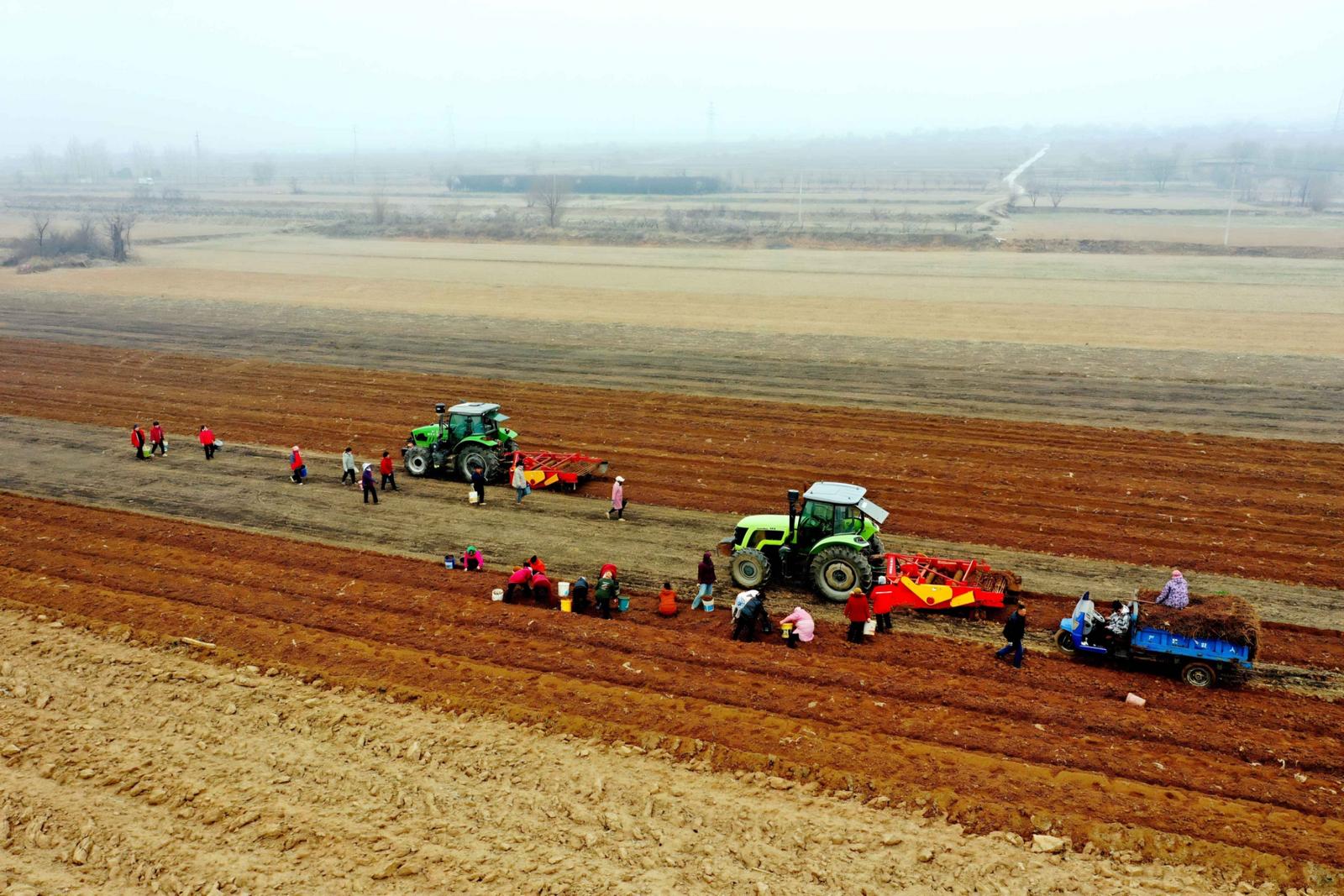 3月13日,运城市平陆县张店镇横涧村药农抢抓晴好天气,利用机械采挖、分拣、装运中药材黄芩,田间地头一派丰收的繁忙景象。