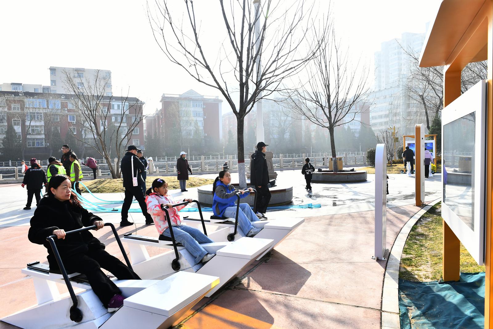 “跑酷、骑行、划船,虚拟场景+实景运动,科技感十足带来健身乐趣。”3月15日,太原市水系公园,市民用刚建成的AI互动健身系统健身锻炼。