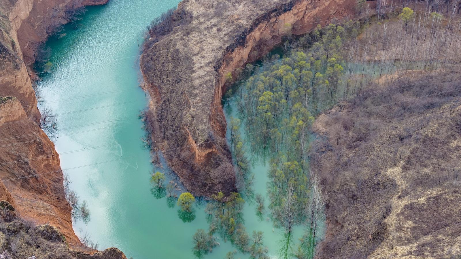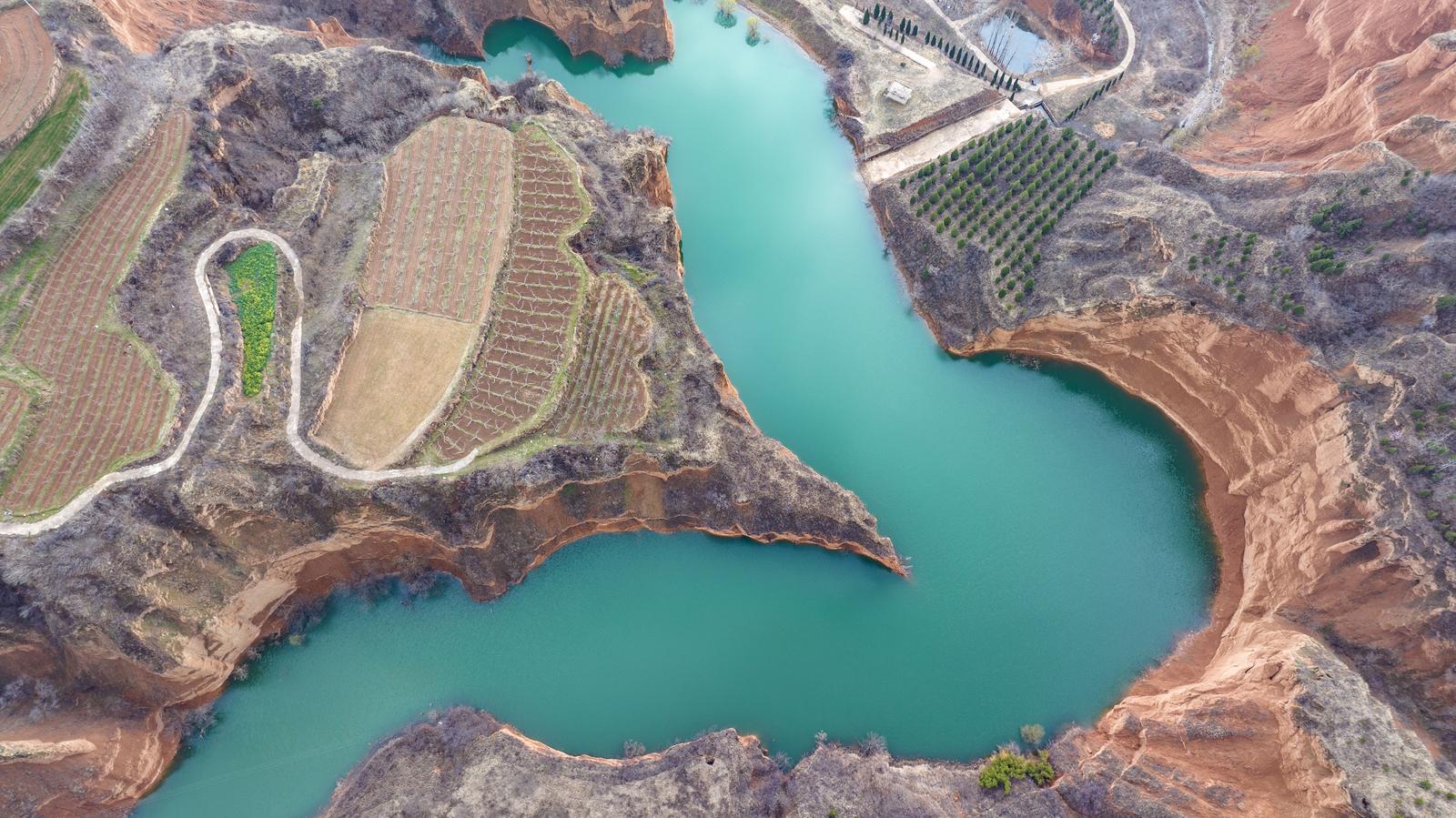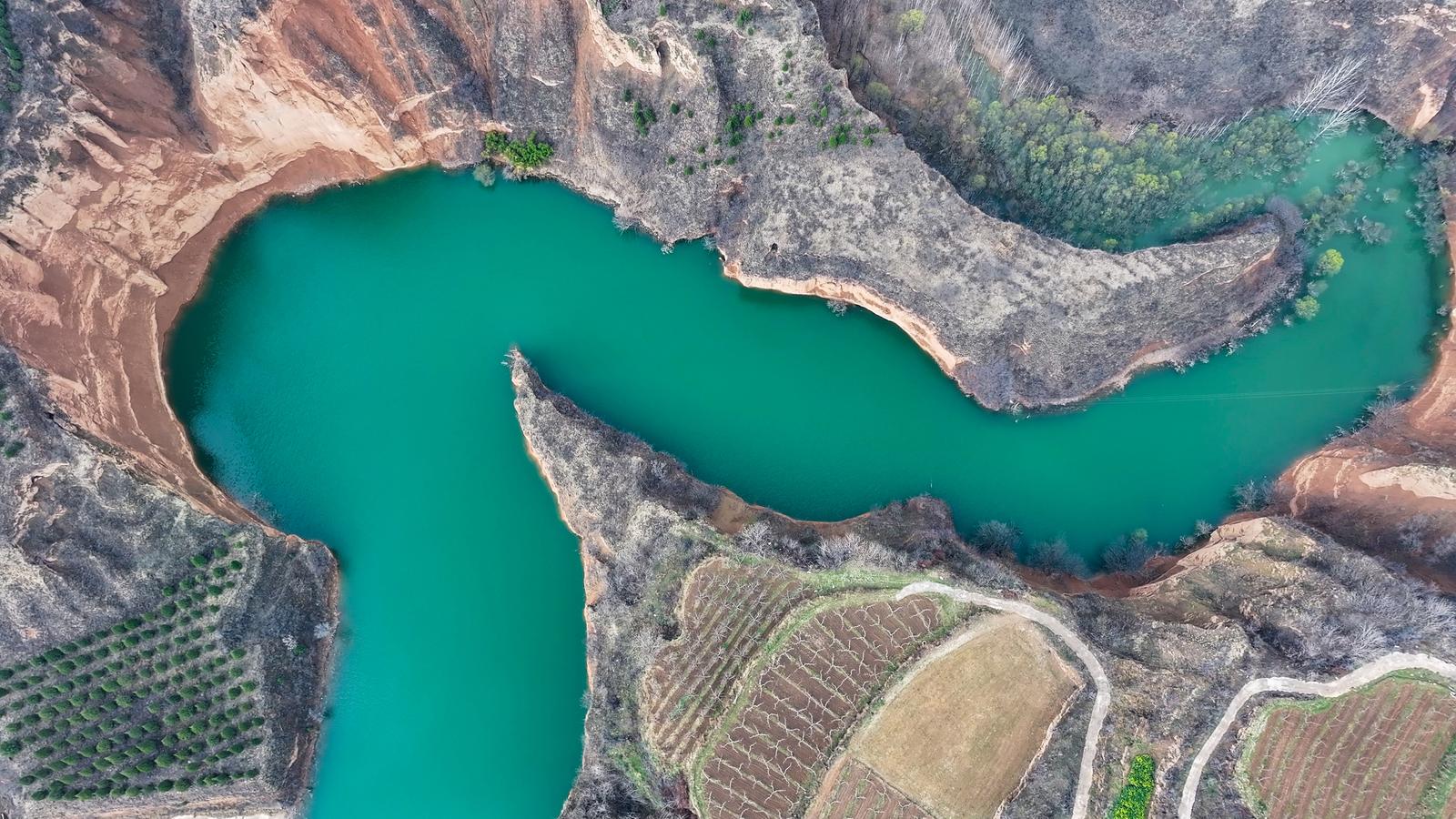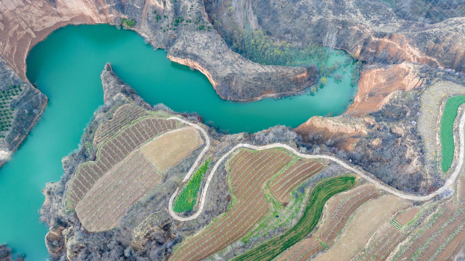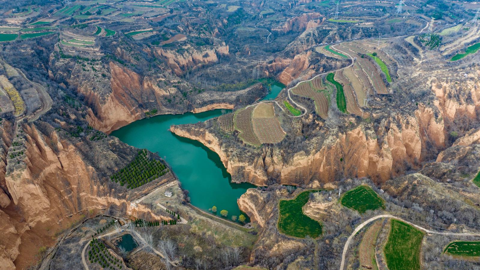 3月15日,运城市平陆县郑沟流域的贺家庄水库,在春日暖阳下碧绿的库水在黄土沟壑间蜿蜒流淌,层层梯田与错落林木相映成趣,勾勒出一幅秀美的山水田园图景。