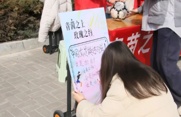 为丰富体育文化氛围,弘扬奋勇拼搏、团结协作的女足精神,3月15日,山西师范大学外国语学院在南区四、五号教学楼间举办“青茵之上,玫瑰之约”主题帐篷活动。