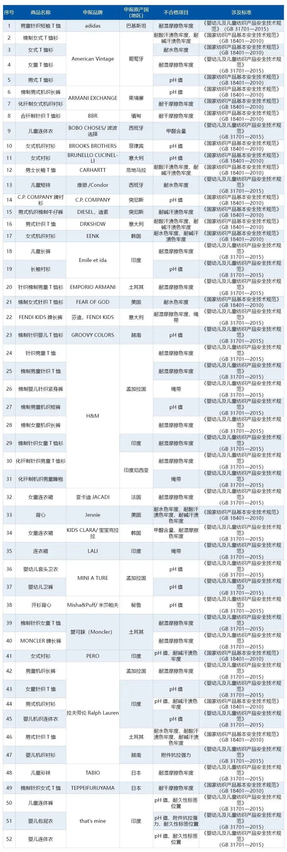 记者注意到,adidas申报的男童针织短袖T恤不合格项目为耐湿摩擦色牢度,American Vintage旗下棉制女士T恤衫、女士T恤衫、女童T恤衫、男士T恤衫4个商品均检出不合格项目。