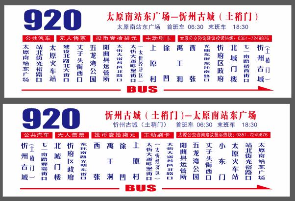 记者从太原公交集团公司获悉,为进一步方便920路[太原南站东广场—忻州古城(土稍门)]沿线市民往返太原、忻州两地,3月21日起,920路沿途增加:建设北路北大街口(回程为小东门)、丈子头街西口、五龙湾公园、太忻大道首邑北路口、上原村、七一南路桥西街口(回程为七一南路程婴街口)公交站点停靠。