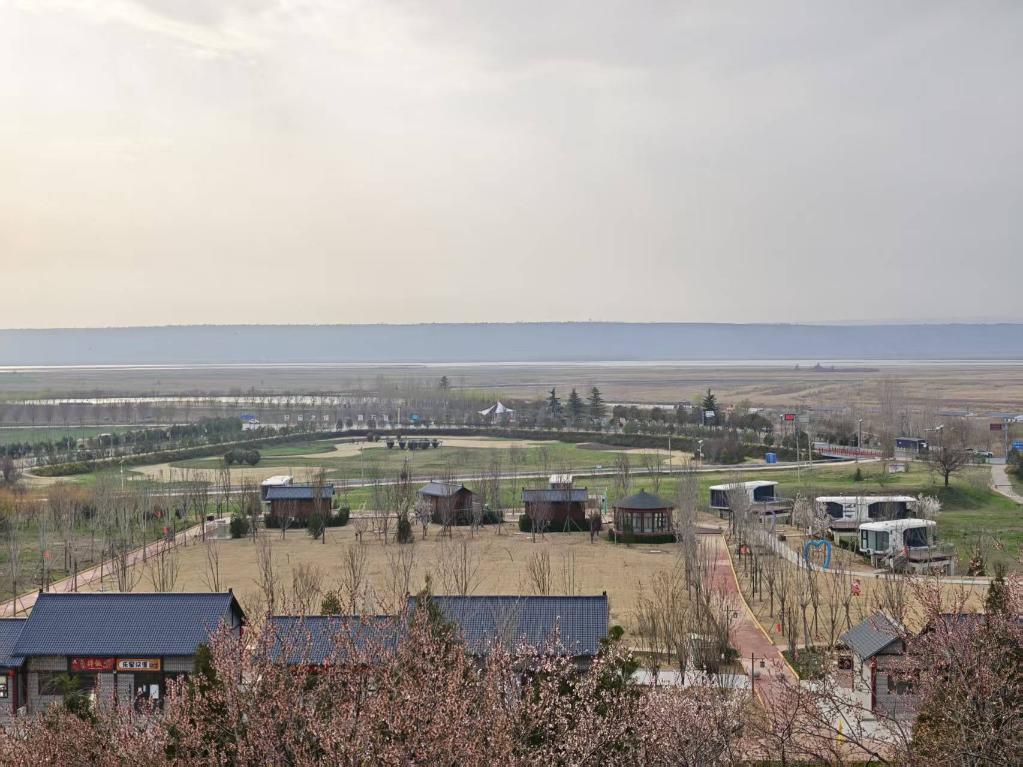 站在山西省运城市万荣县荣河镇庙前村附近的汾河左岸,只见入黄口处水势平缓、水清岸阔,春日盛景与生态治理成效浑然相融。