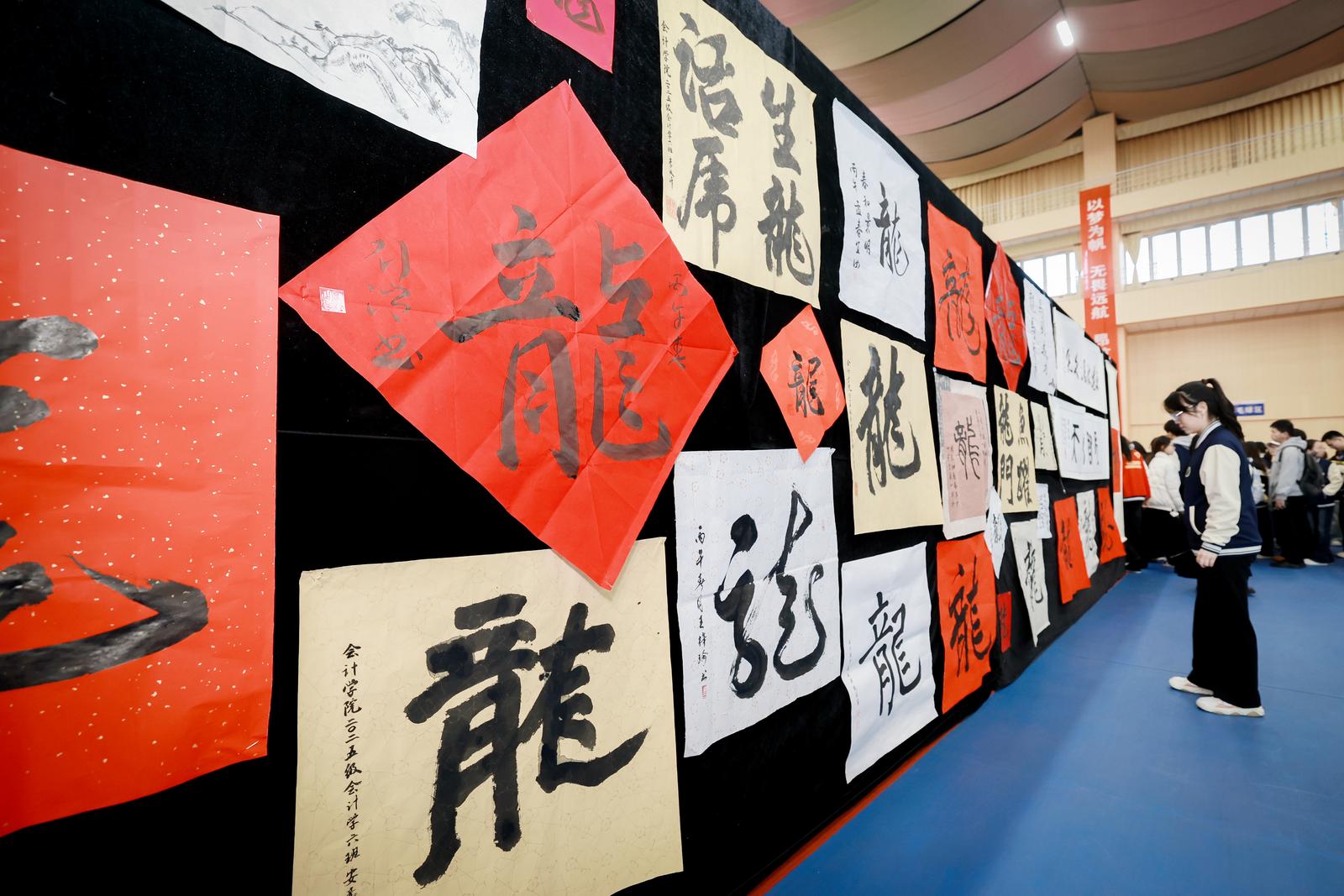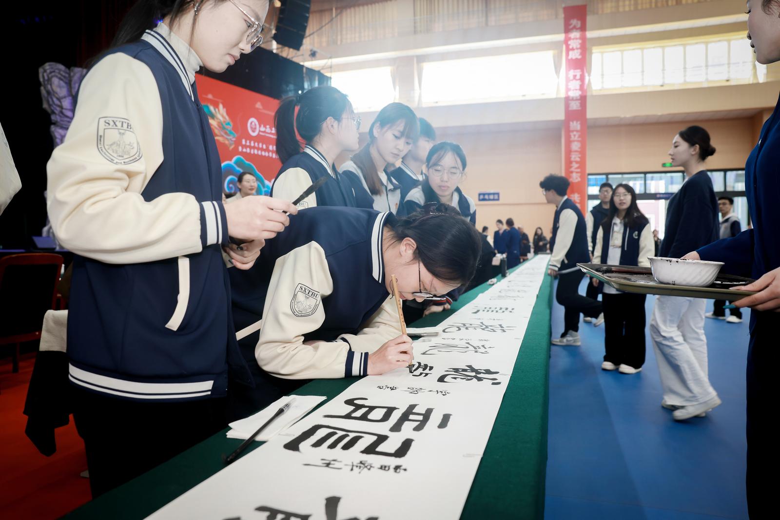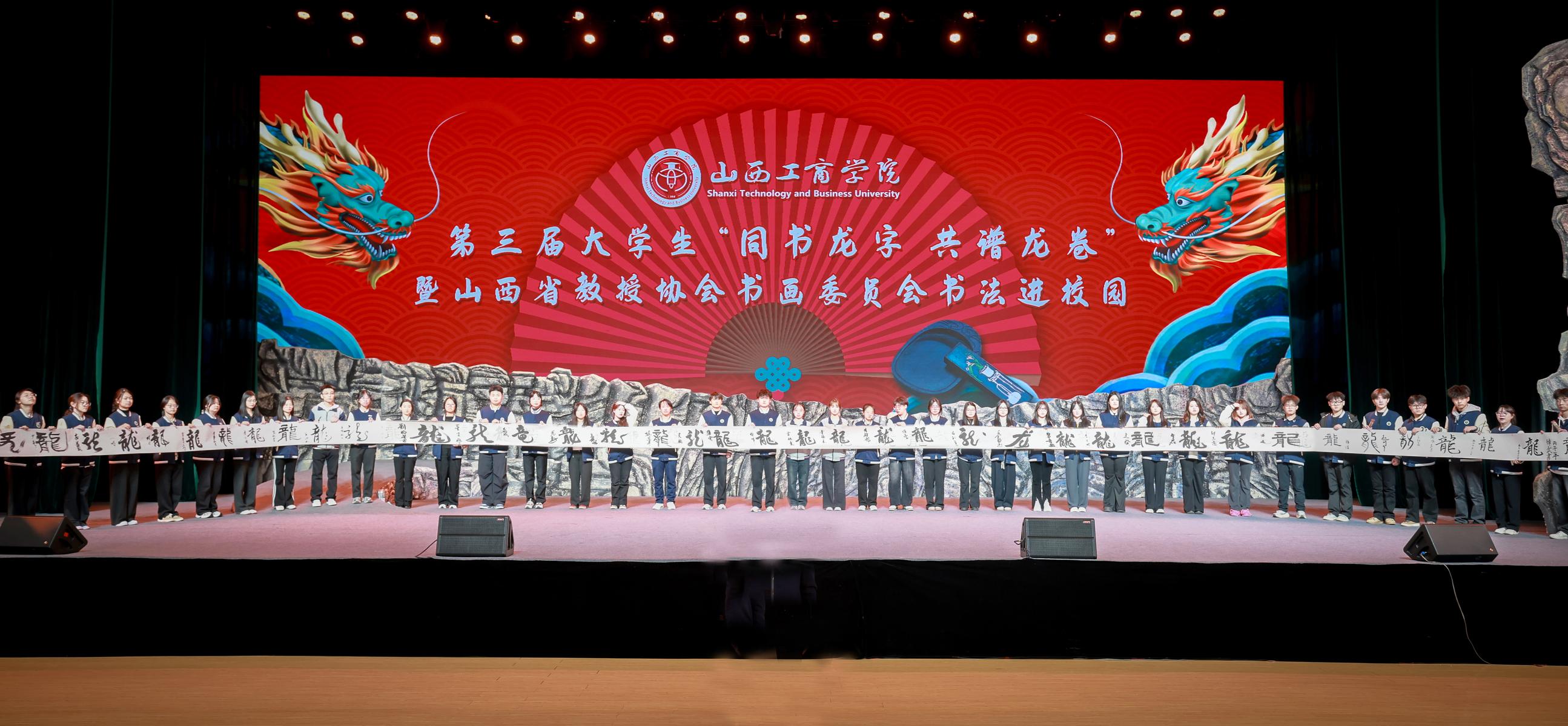 3月20日,农历二月二“龙抬头”,山西工商学院第三届大学生“同书龙字 共谱龙卷”暨山西省教授协会书画委员会“书法进校园”活动举行。活动将思政育人与民俗文化、书法艺术深度融合,以笔为媒传承中华优秀传统文化,以文化人厚植青年学子家国情怀。
