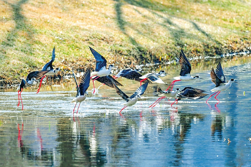 6.吕梁市吉祥湖公园迎来黑翅长脚鹬等迁徙候鸟