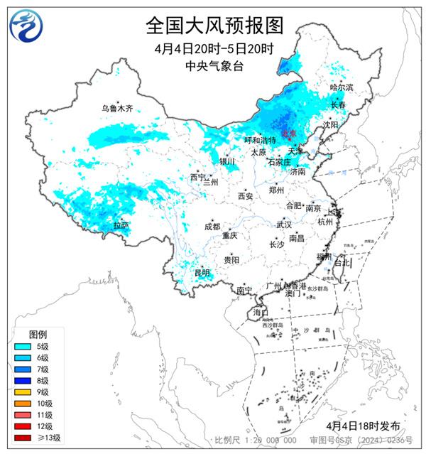 中央气象台继续发布了大风预警,预计今天夜间到明天,内蒙古大部、山西北部、京津冀北部和南部、山东北部、新疆南部、青海南部、西藏中西部、川西高原北部等地部分地区有5~7级风,阵风7~9级;其中,内蒙古中部局地阵风10级以上。