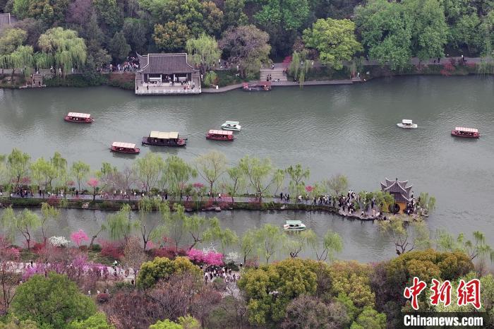 资料图:江苏扬州瘦西湖风景区游人如织。当日是清明假期第一天,民众纷纷走出家门,踏青游玩,乐享春光。(无人机照片)中新社记者 泱波 摄