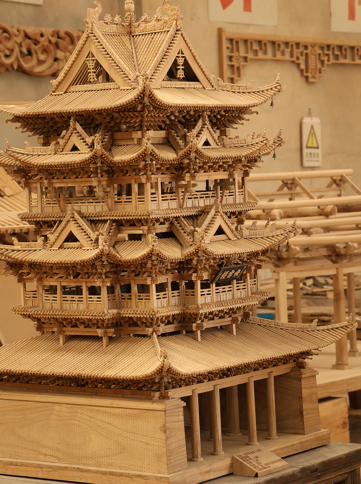 为了满足古建修缮和仿古建工程需求,曾经分解修缮万荣飞云楼的万唐龙古建公司,在坚持各地高标准施工的同时,铺开了复刻10座各种浓缩比例的飞云楼模型工程。该公司长期培育的一线工匠精英在精心加工古建筑木料构件制作的过程中,亲身体会345组斗拱等巧夺天工艺术,品读中华优秀传统文化的保护,既可将濒临失传的精湛榫卯技艺保存下来,更能促使飞云楼通过多种文创形式从万荣走向全国。