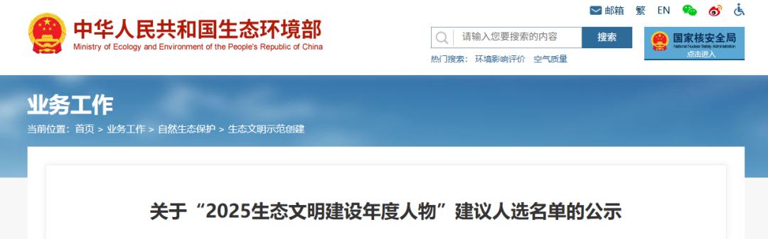 根据中央有关部署和“2025生态文明建设年度人物”宣传选树活动工作方案,按照公开、公平、公正的原则,现对“2025生态文明建设年度人物”拟命名名单进行公示。