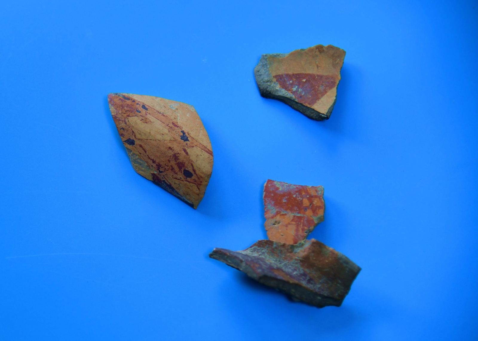 图为在移穣村采集到的几何纹彩陶片。