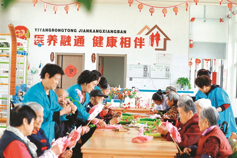 “养中有医”模式是支持养老机构开设医务室,将康复医院、中医医院等医疗机构优先纳入卫生服务体系规划,符合条件的纳入城乡基本医疗保险定点范围。该县君悦养护院增设了康复医院,定期为入住老人开办了特色中医康复理疗,实行疗养、康复、保健、生活照料为一体的运行模式。