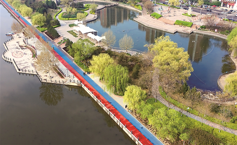 ▲襄汾县滨河公园内花红柳绿,春意盎然,不少市民走出家门赏花踏青,乐享美好春光。 李现俊摄