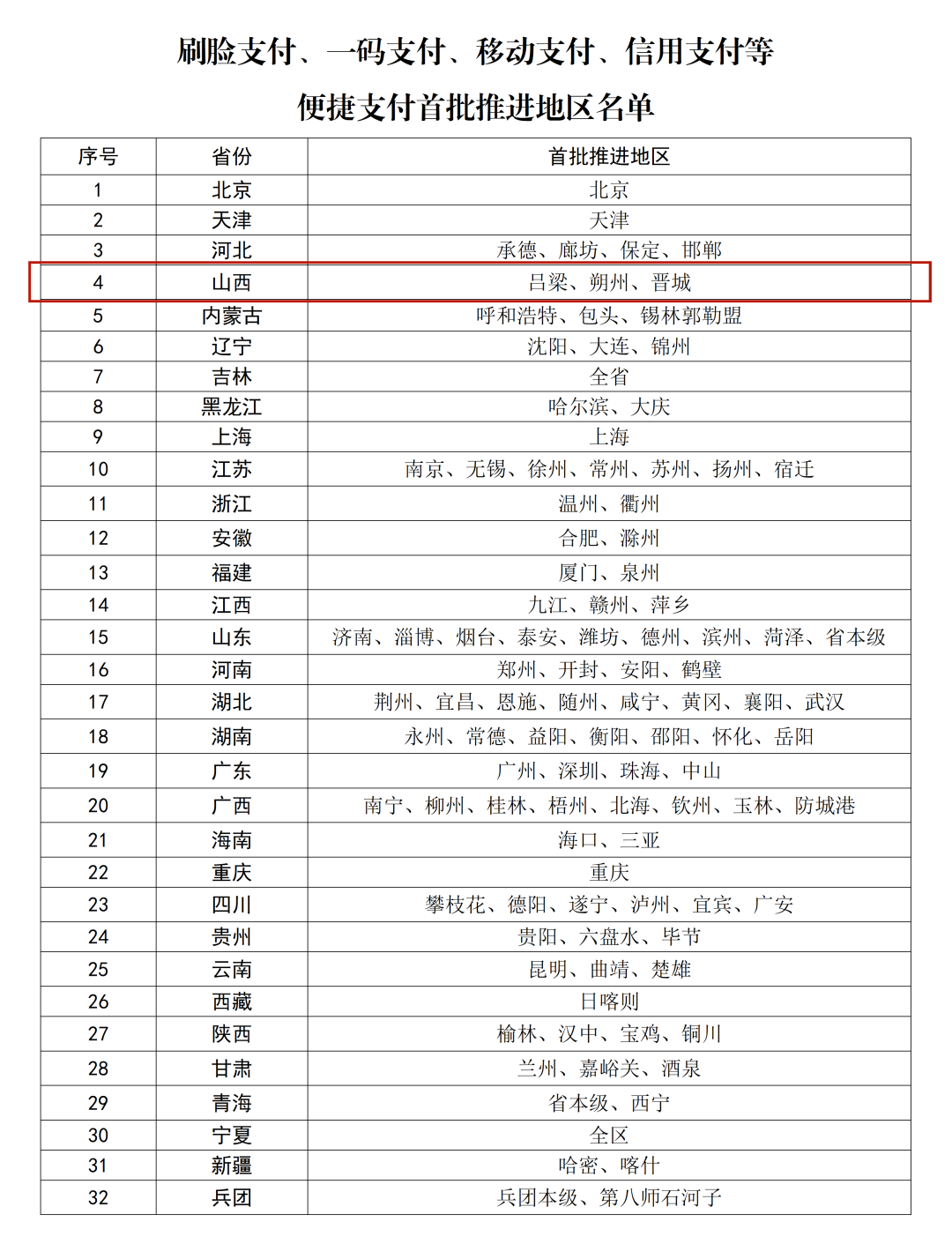 4月8日,国家医保局公布刷脸支付、一码支付、移动支付、信用支付等便捷支付首批推进地区名单,力争大幅压减排队缴费时长,有效缓解参保群众排队奔波。其中,我省吕梁、朔州、晋城入选。