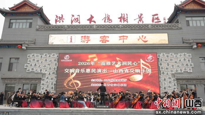自2023年4月山西省交响乐团首次走进洪洞大槐树景区奏响交响组曲《寻根大槐树》,2024年4月、2025年4月,至今已是山西省交响乐团第四次走进洪洞大槐树景区,为广大游客、移民后裔、市民群众倾情演奏。此次交响乐展演,不仅是2026年洪洞大槐树寻根问祖旅游季系列活动之一,也是山西省文化和旅游厅主办的山西省交响乐团2026年“高雅艺术润民心”交响音乐惠民演出。4月9日,还将演奏《寻根大槐树》《红楼梦》组曲等,以音传情,乐润人心,让高雅艺术可触可感、更接地气,也让文旅融合与高雅艺术普及实现双向赋能,为景区游客和市民群众带来更加丰富的旅游体验感。