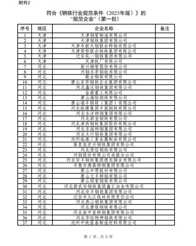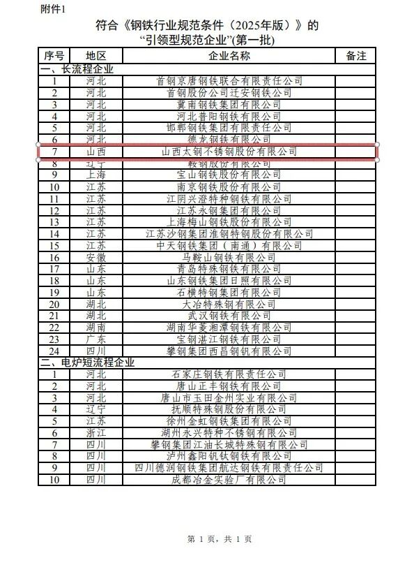 附件:1.符合《钢铁行业规范条件(2025年版)》的“引领型规范企业”(第一批)