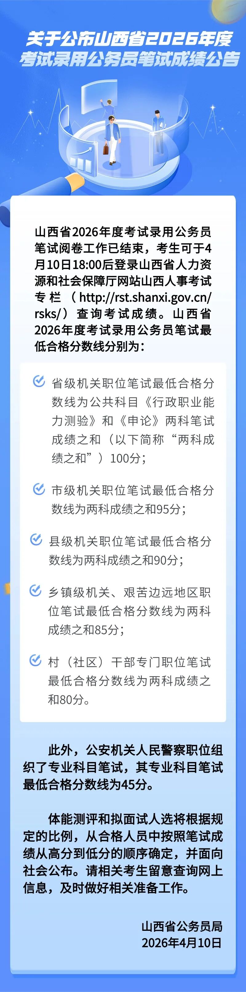 关于公布山西省2026年度考试录用公务员笔试成绩公告