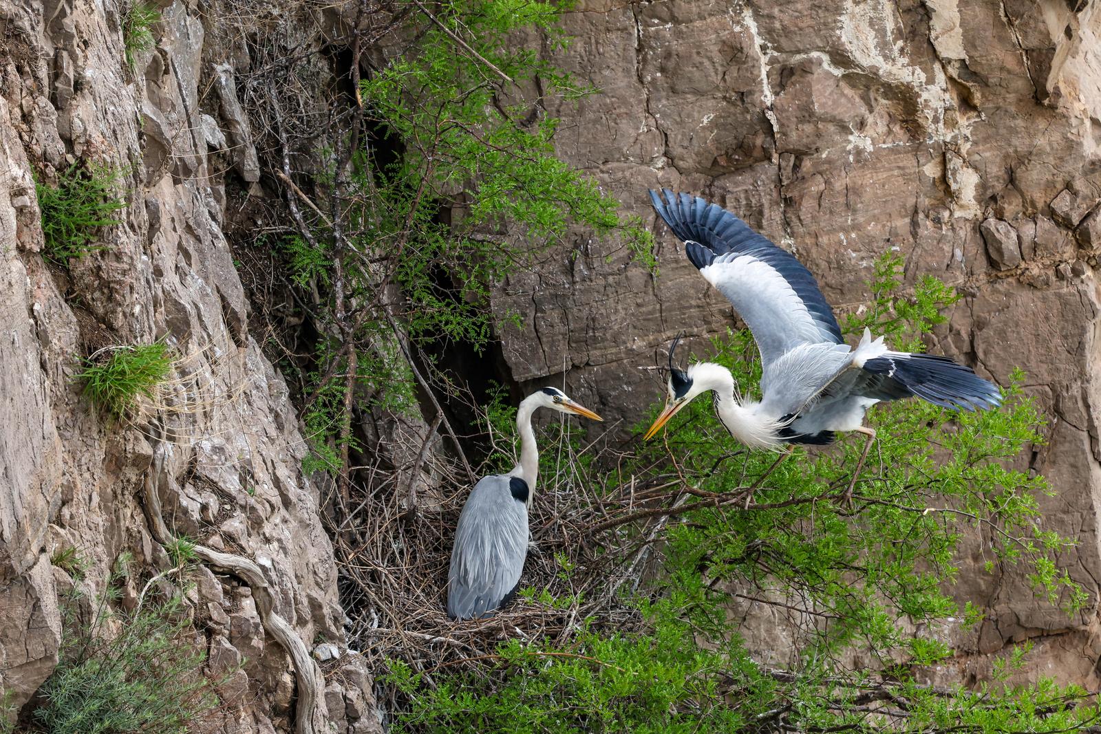 近日,随着气温回升,运城市平陆县好汉坡黄河岸畔的悬崖峭壁间,近千只苍鹭在此筑巢、飞舞、觅食、嬉戏、繁衍,成为黄河岸边一道灵动亮丽的生态风景线。